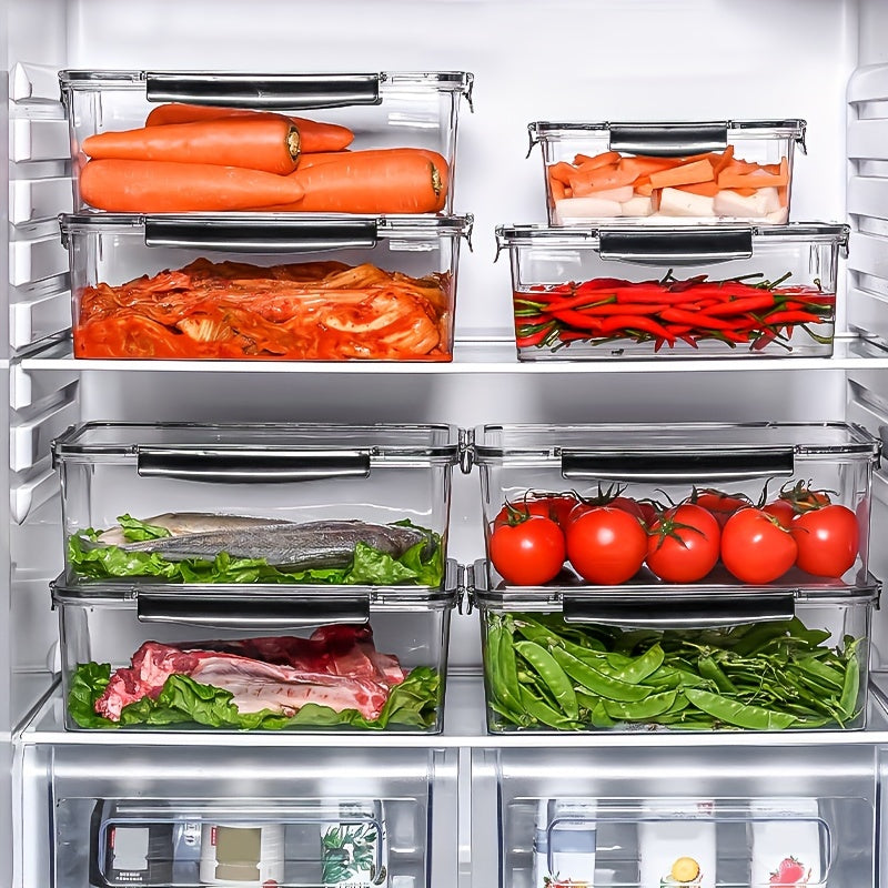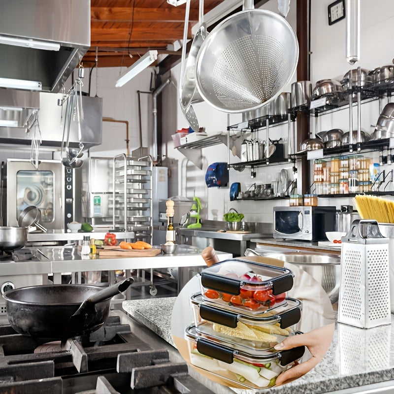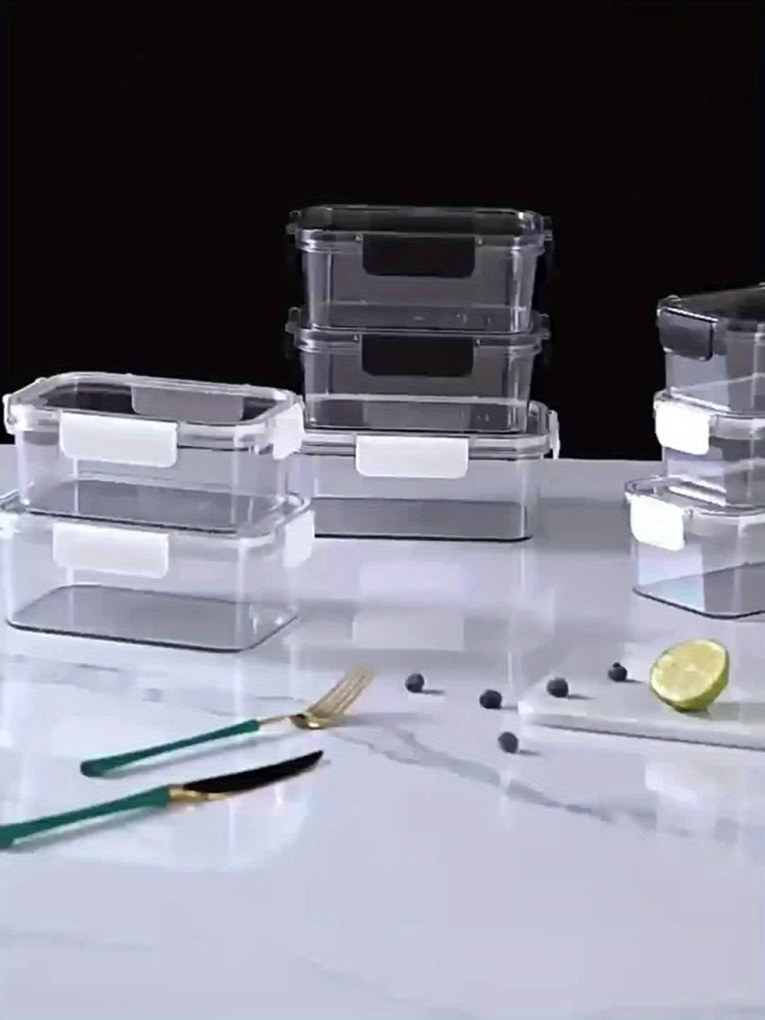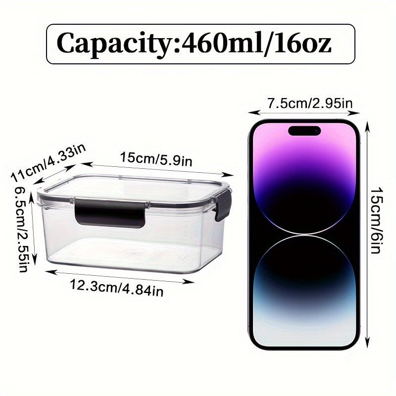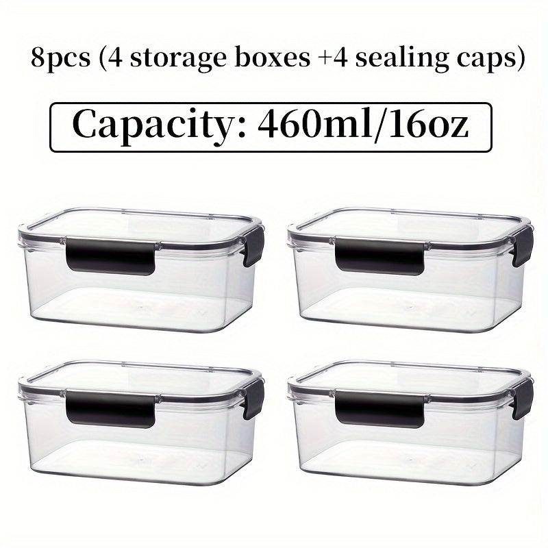 8 peças (4 caixas de armazenamento + 4 tampas de vedação) 460 ml/16 oz caixa de armazenamento de alimentos transparente preta à prova de vazamento, lancheira de plástico PET, caixa de preparação de almoço para carne, vegetais e salada de frutas, adequada para escritório, escola, lavagem à mão, armazenamento de alimentos e conjunto de armazenamento