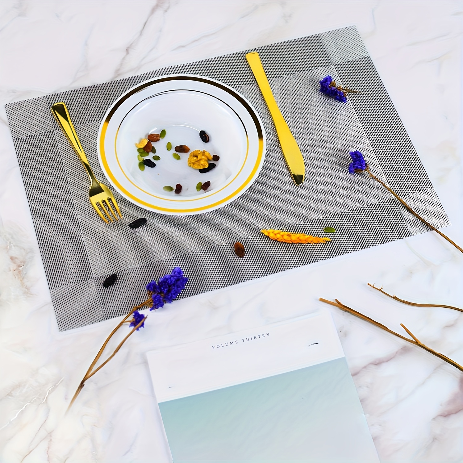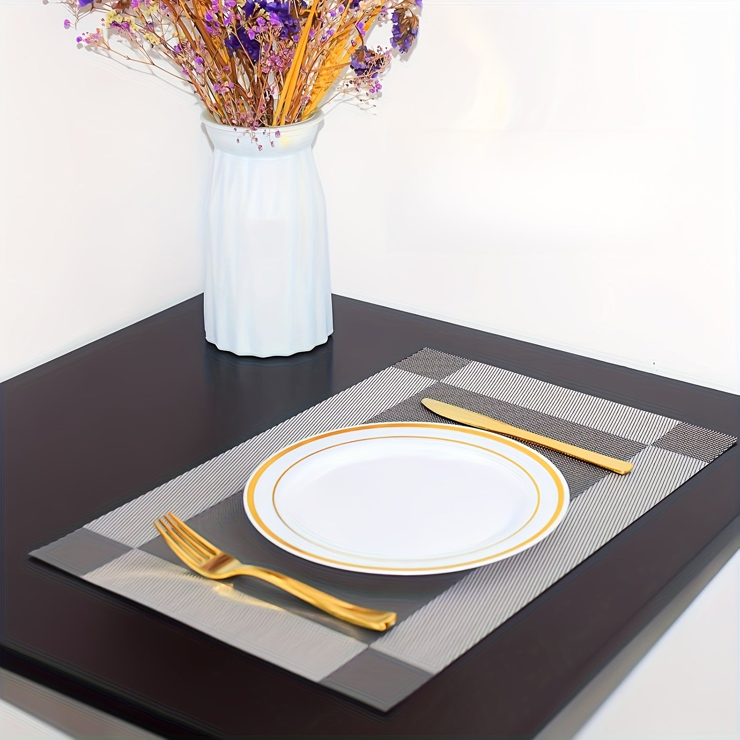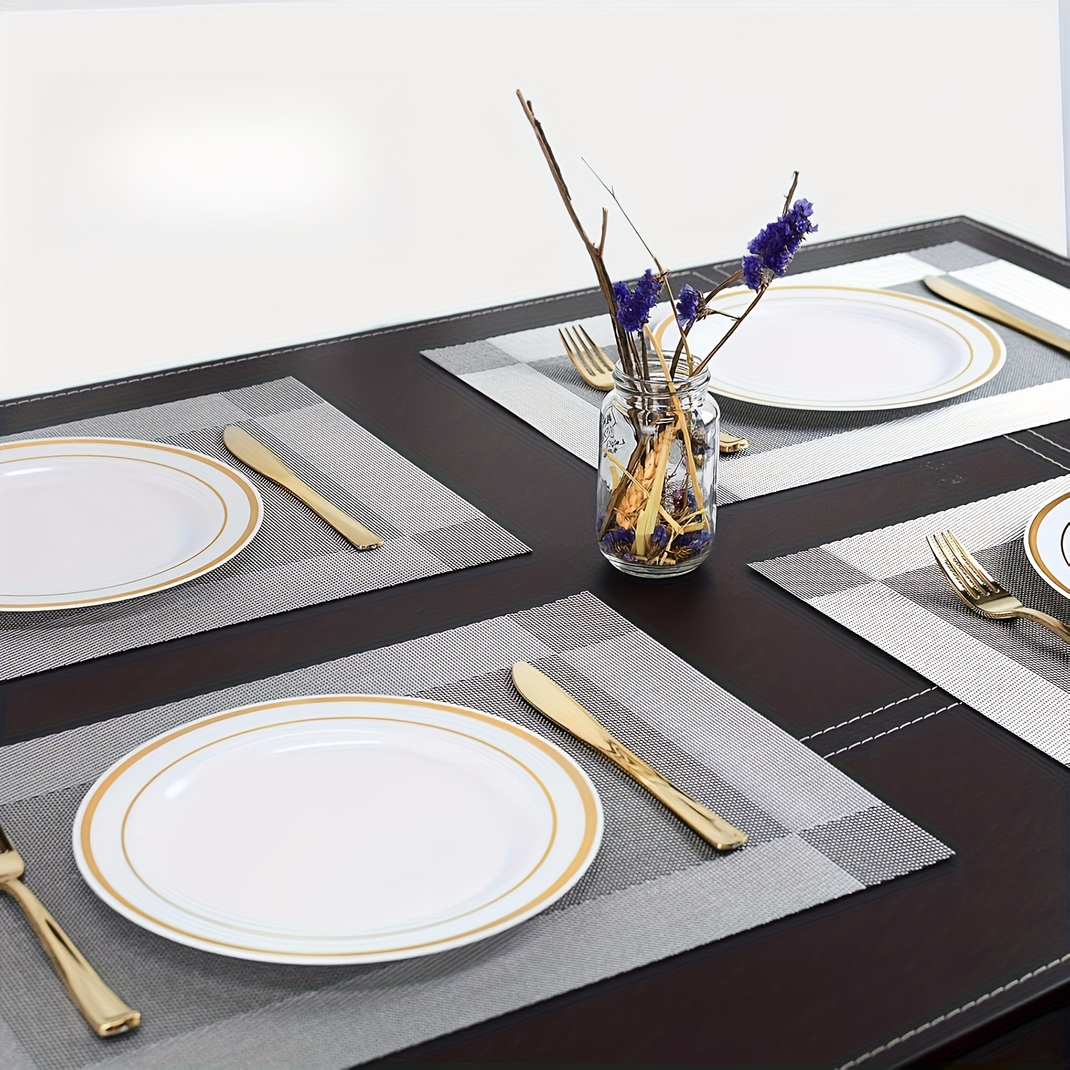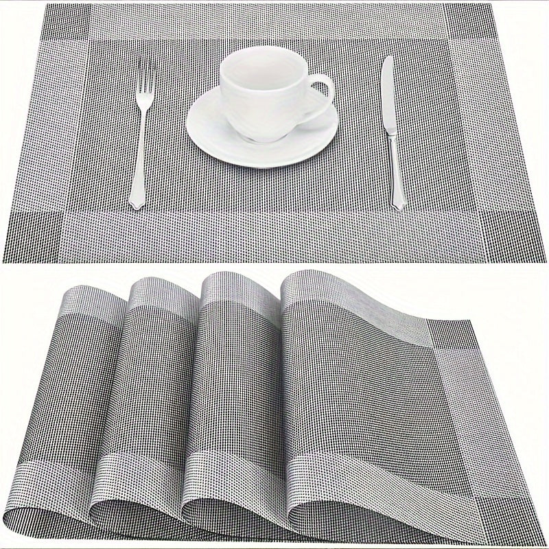 4 peças de jogos americanos diagonais de vinil retangulares laváveis elegantes para áreas internas e externas, cozinha, sala de jantar, tapetes de mesa de PVC