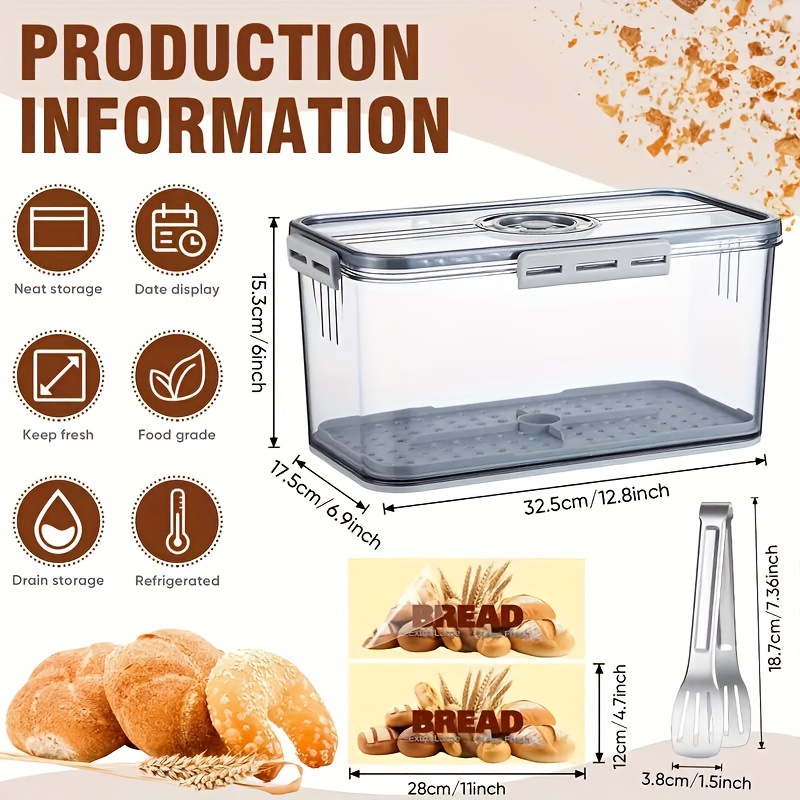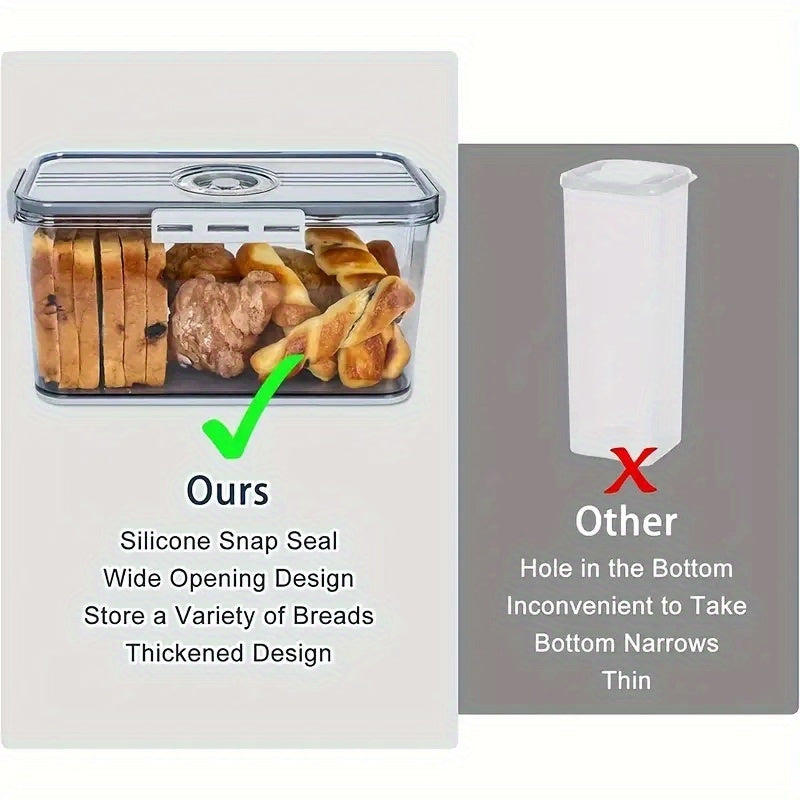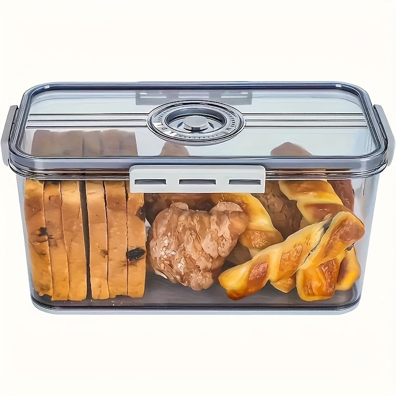 Pacote com 1 caixa hermética para pão - tampa flip-top à prova de vazamentos, recipiente de plástico durável para armazenamento de alimentos para pão, torradas e doces - design retangular que economiza espaço, reutilizável e portátil para cozinha, despensa, escritório e viagens