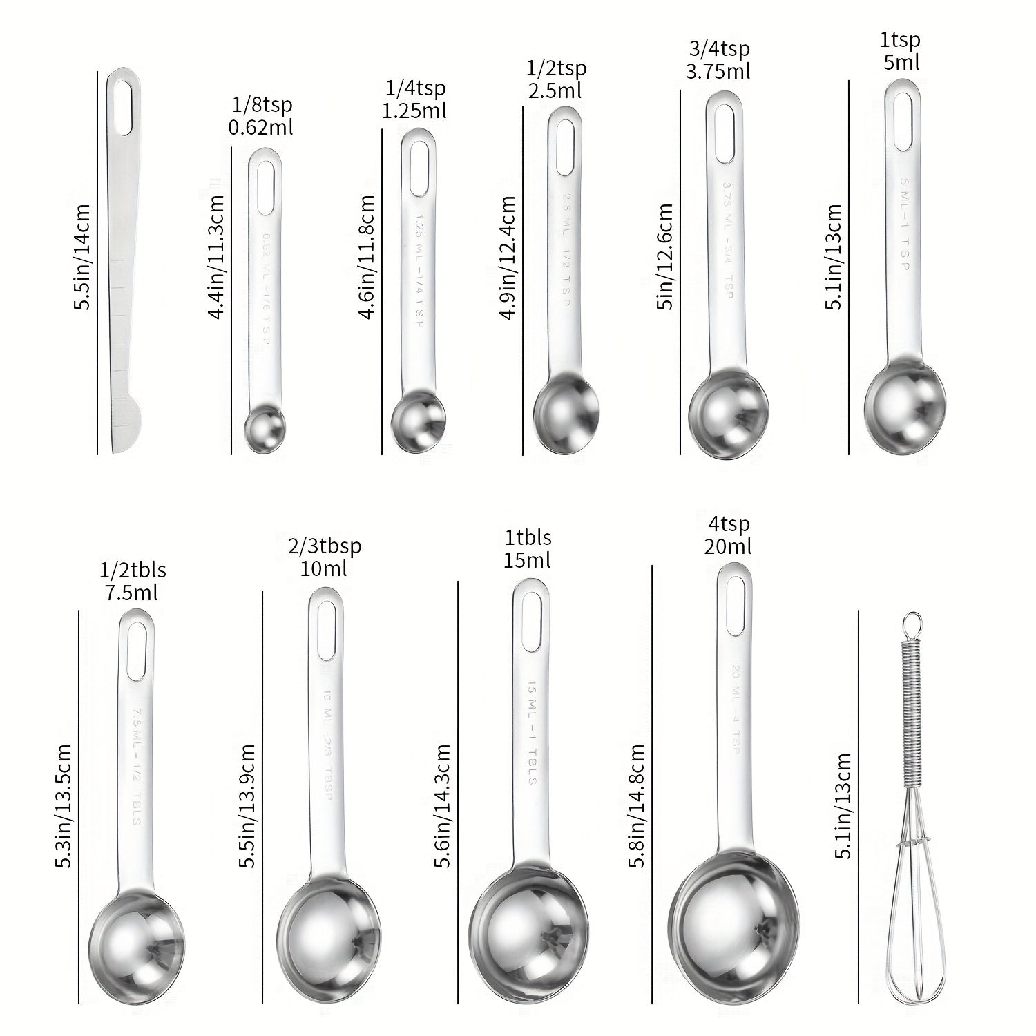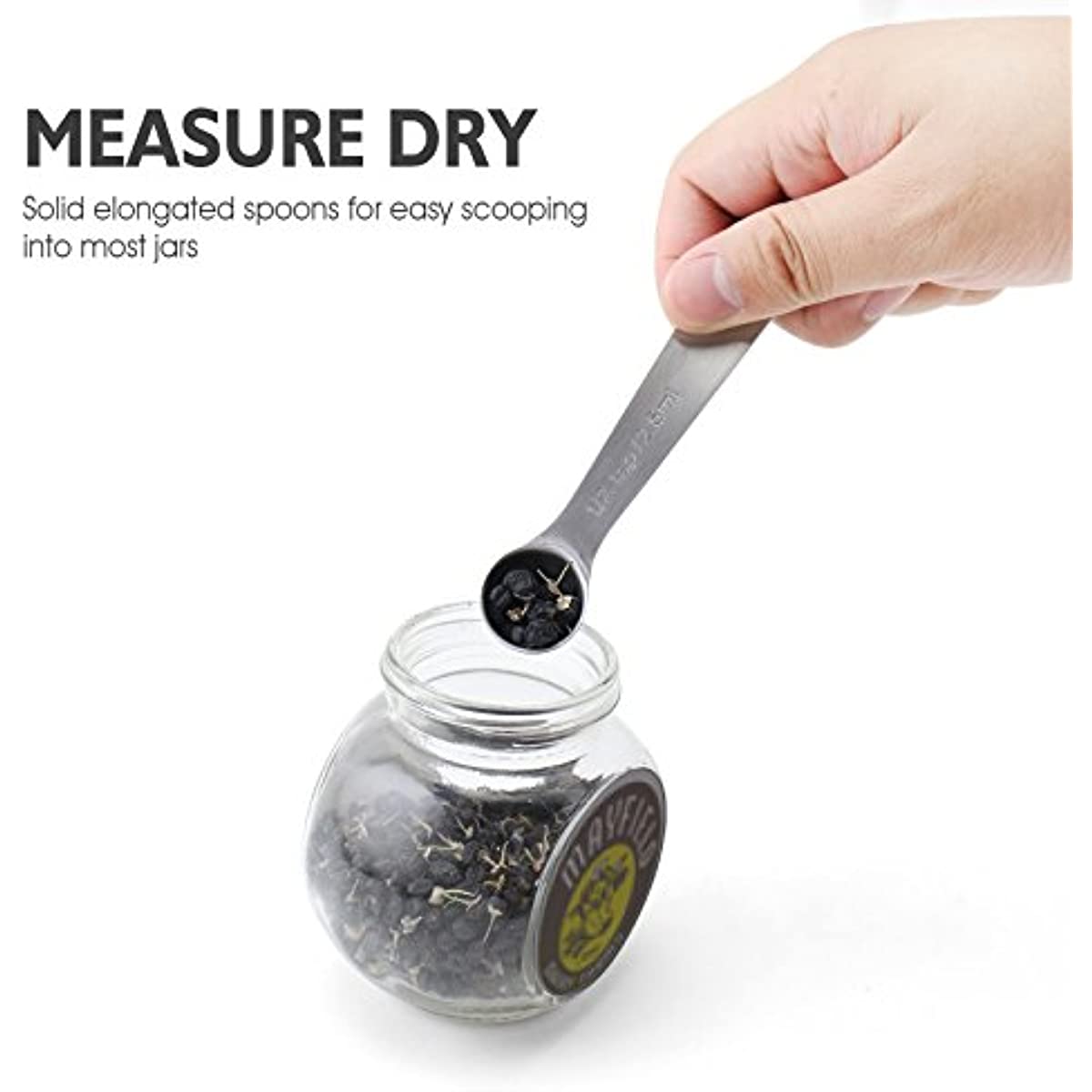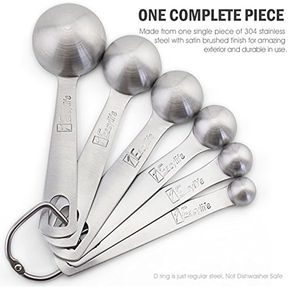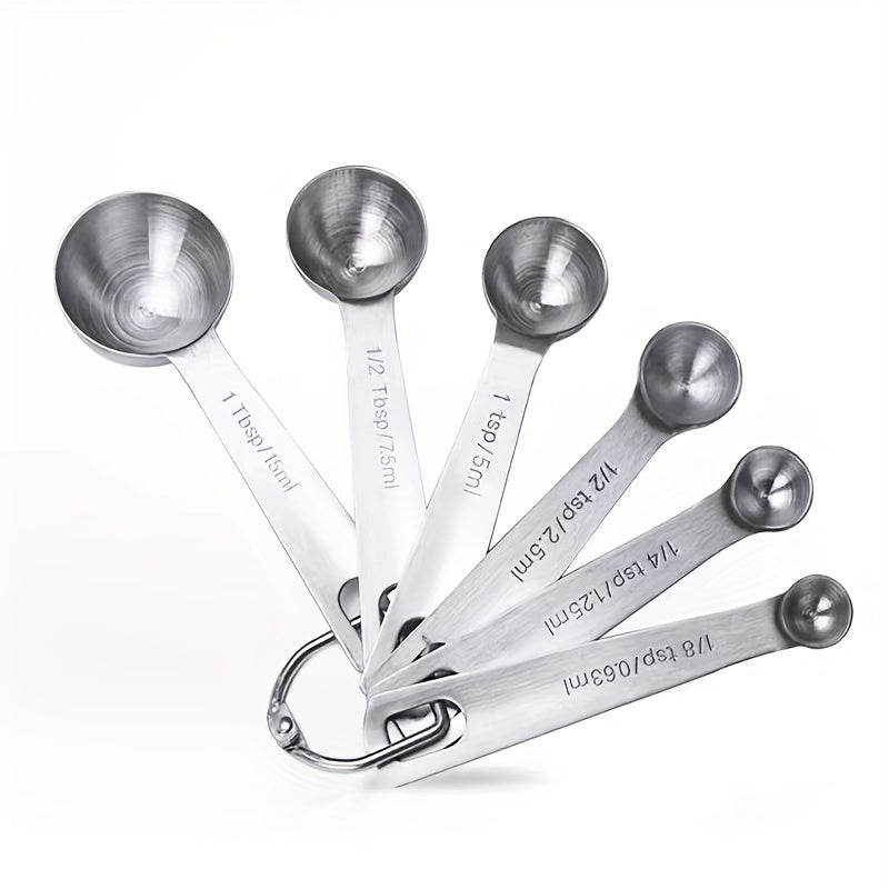 Colher medidora de aço inoxidável 18/8, conjunto com 6 peças para medir ingredientes secos e líquidos