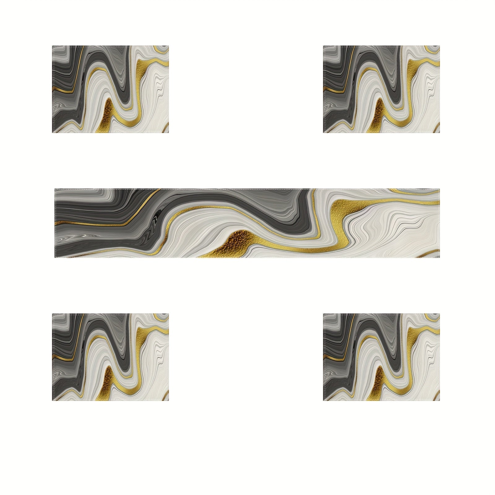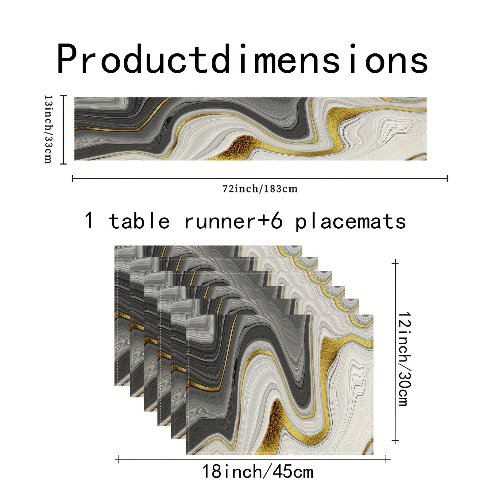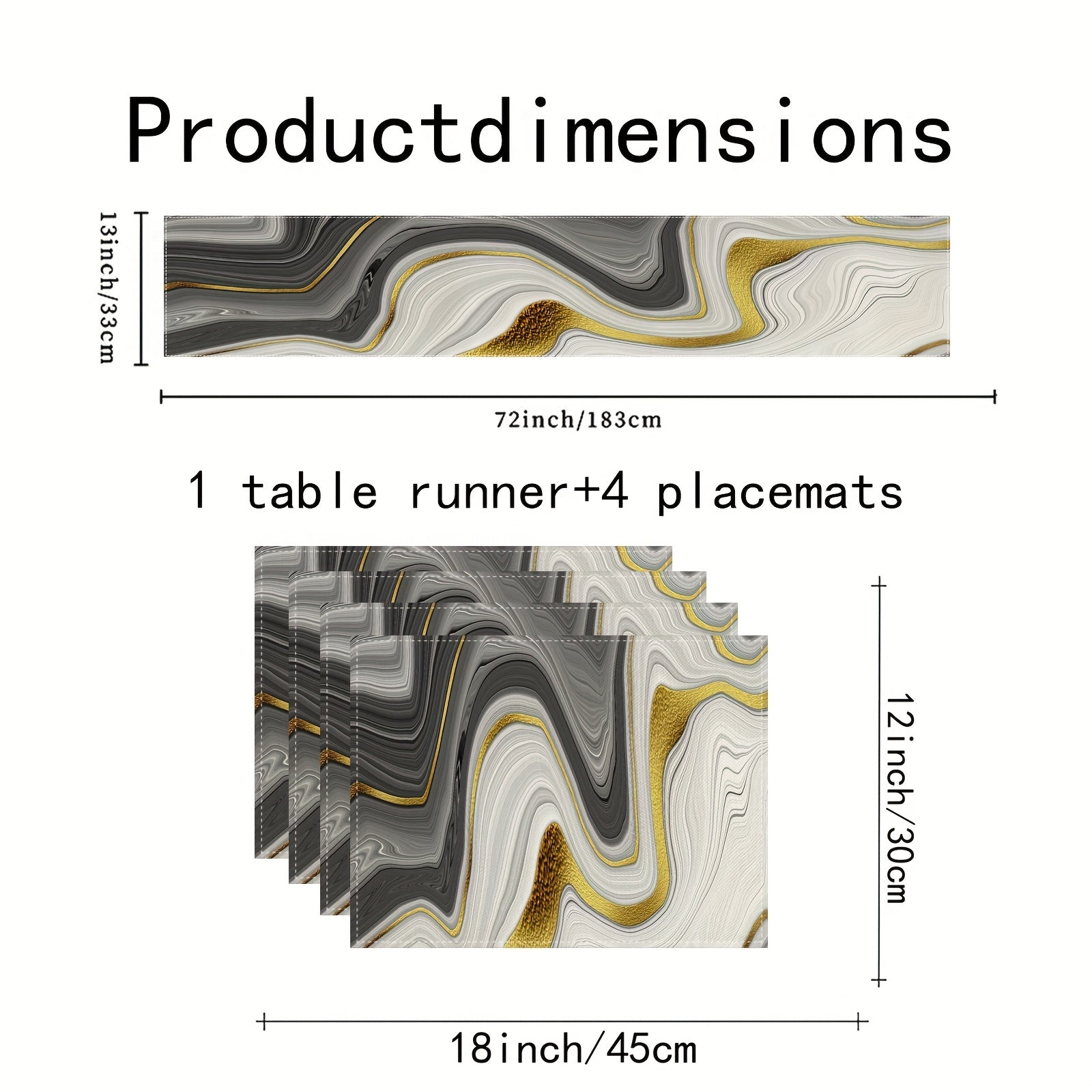 Conjunto de 5/7 peças de bandeiras de mesa e jogos americanos de mármore preto e dourado
