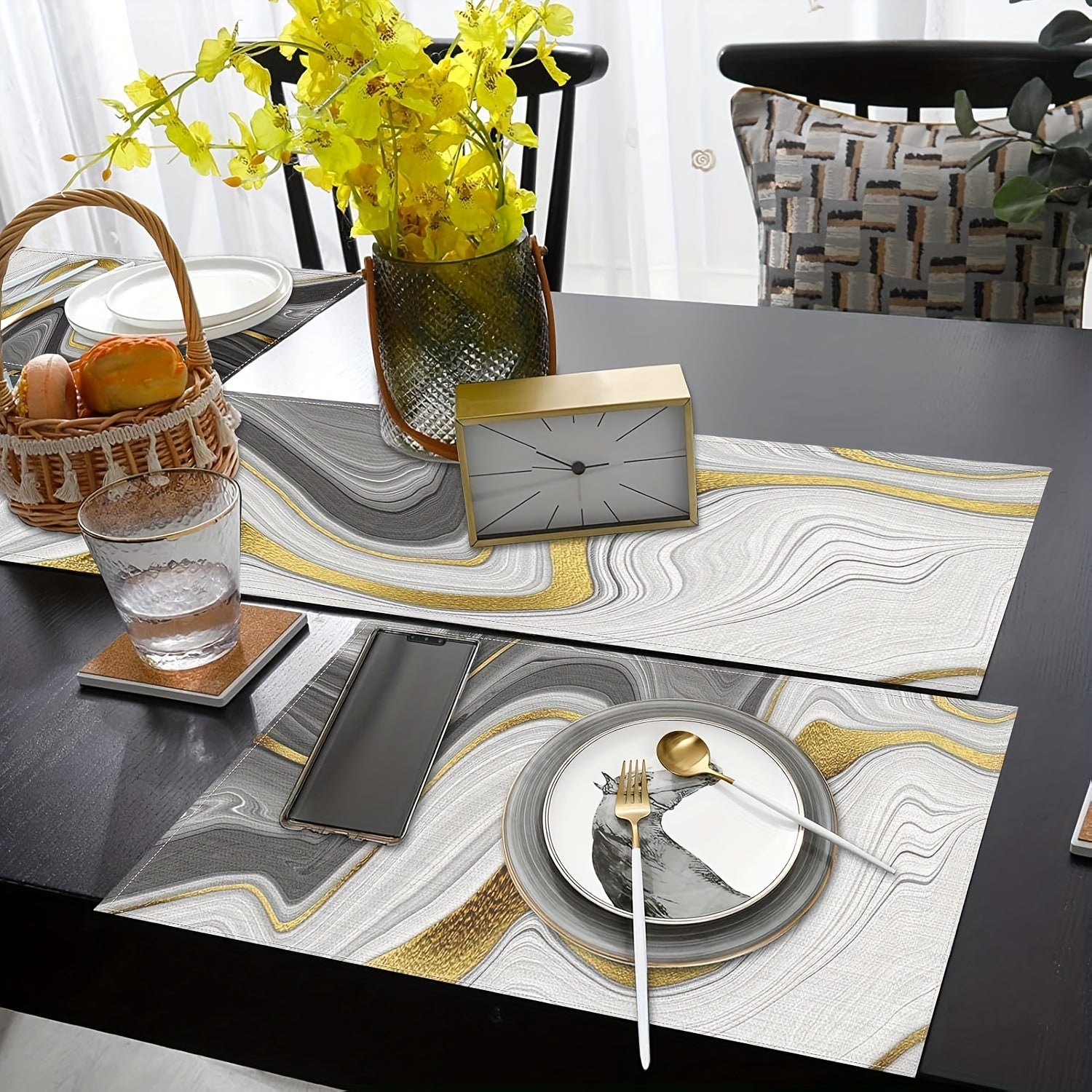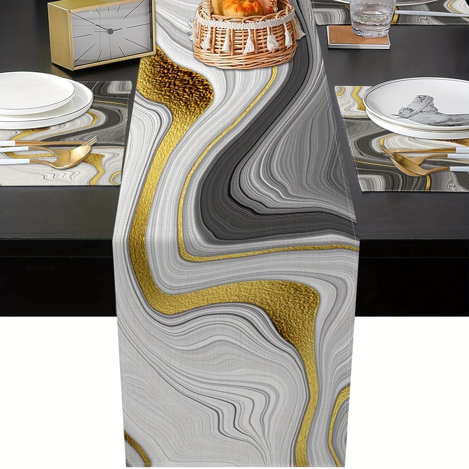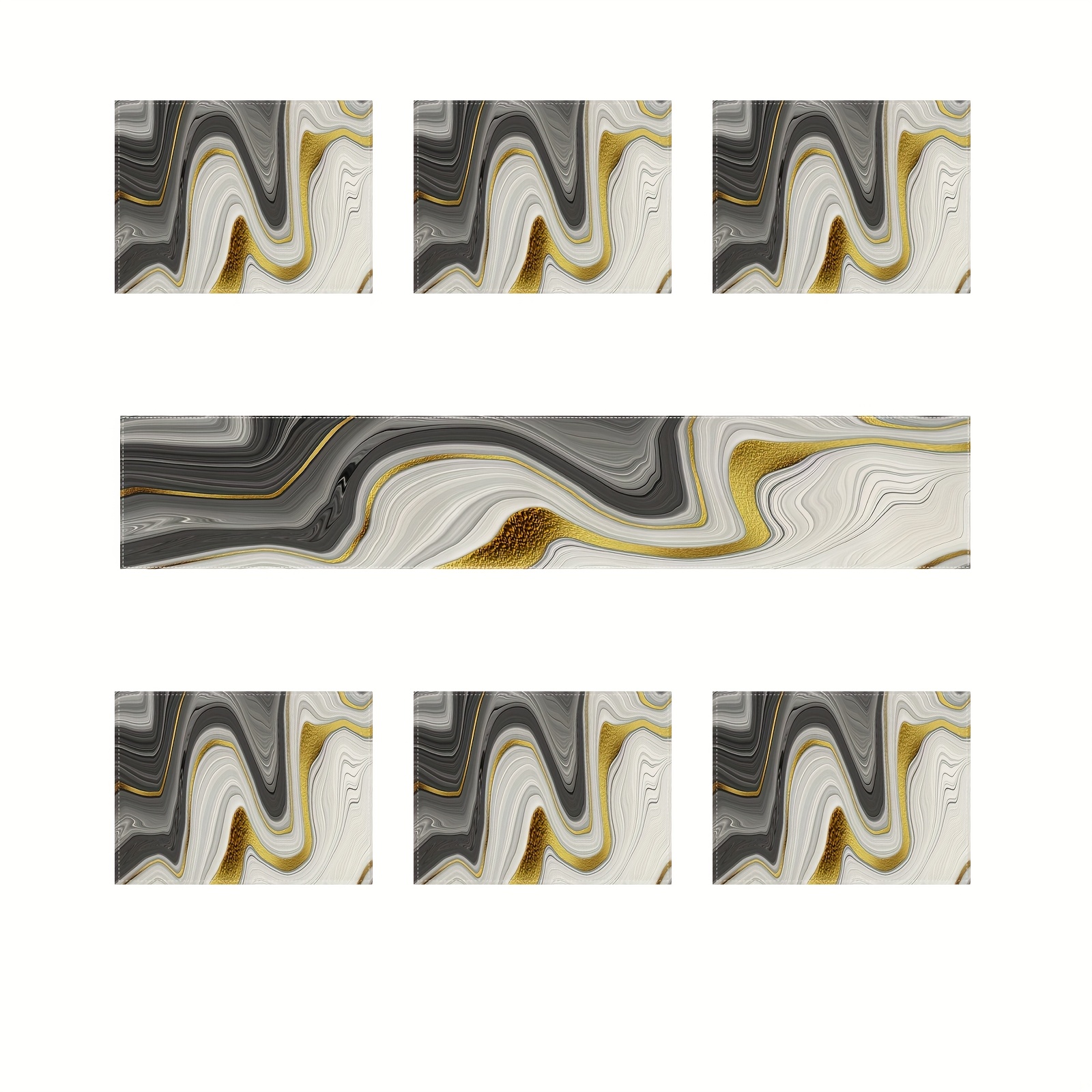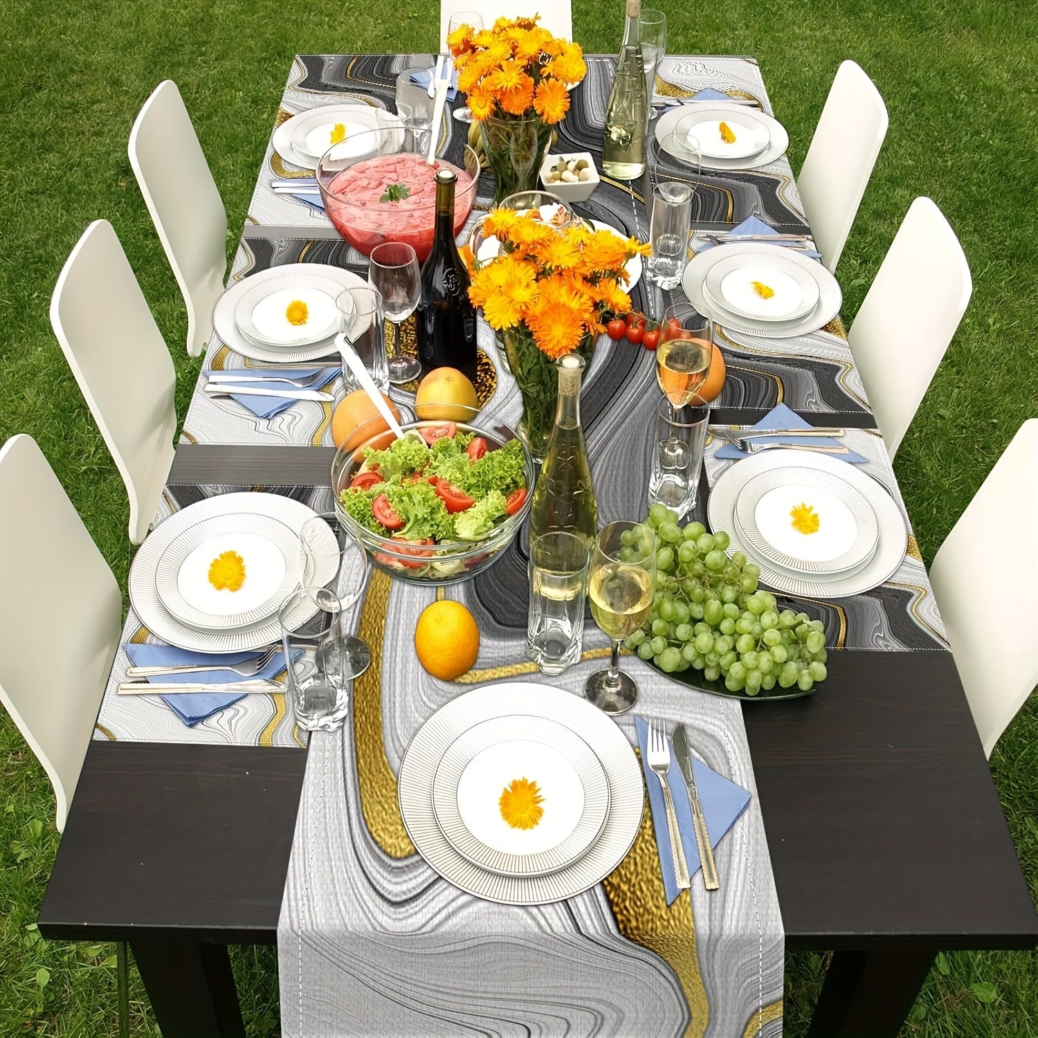Conjunto de 5/7 peças de bandeiras de mesa e jogos americanos de mármore preto e dourado