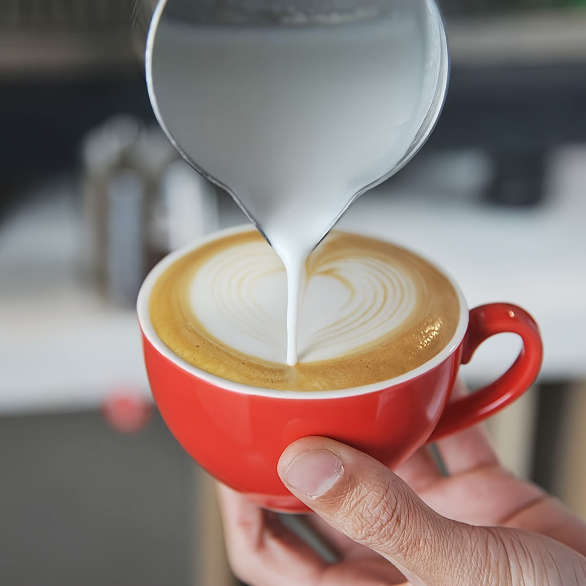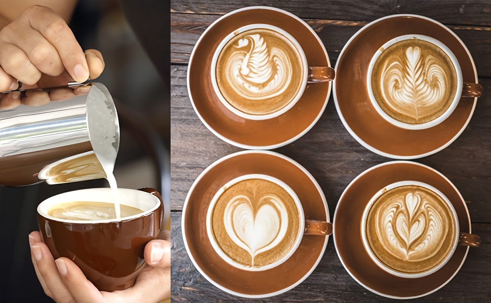 Design prático: esta jarra portátil para espumar leite protege você contra queimaduras. Com seu design fácil de segurar e despejar, você não sentirá desconforto nas mãos ao preparar muitos lattes.