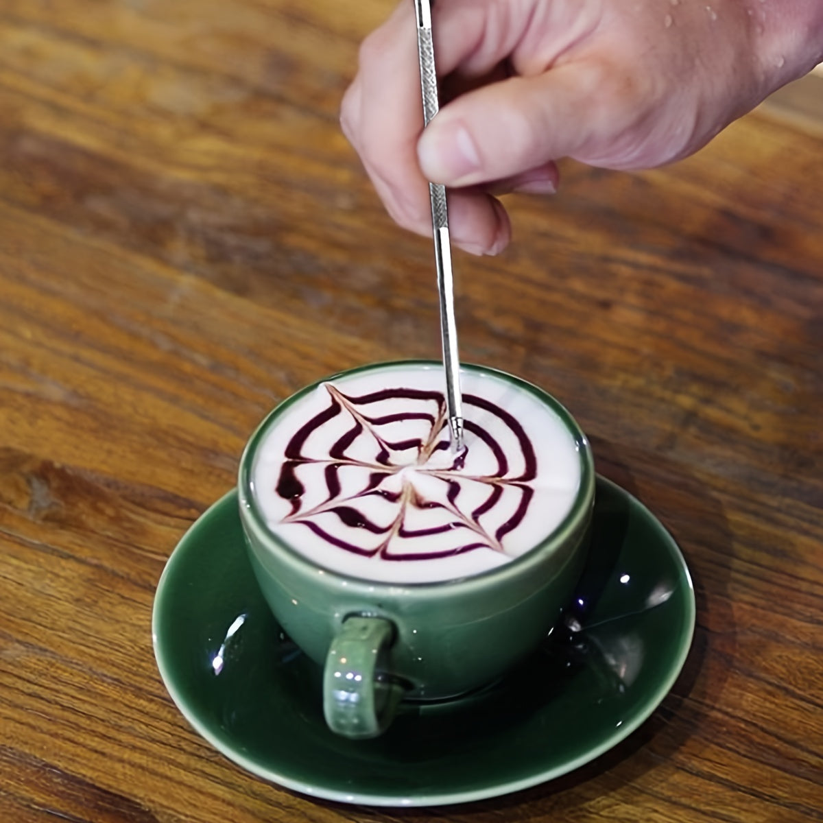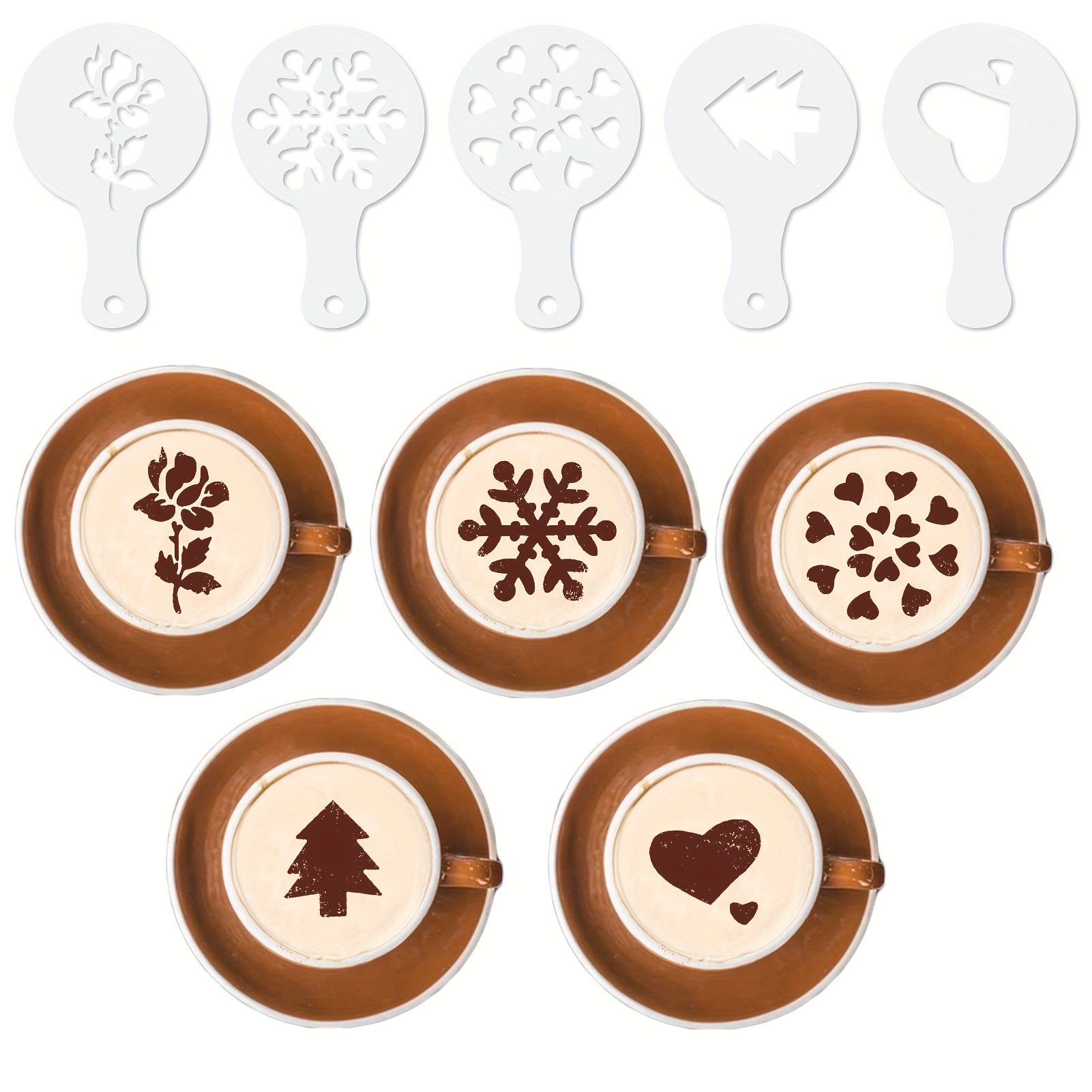 de pó, 30 estênceis para decoração de café e uma caneta para arte em café.