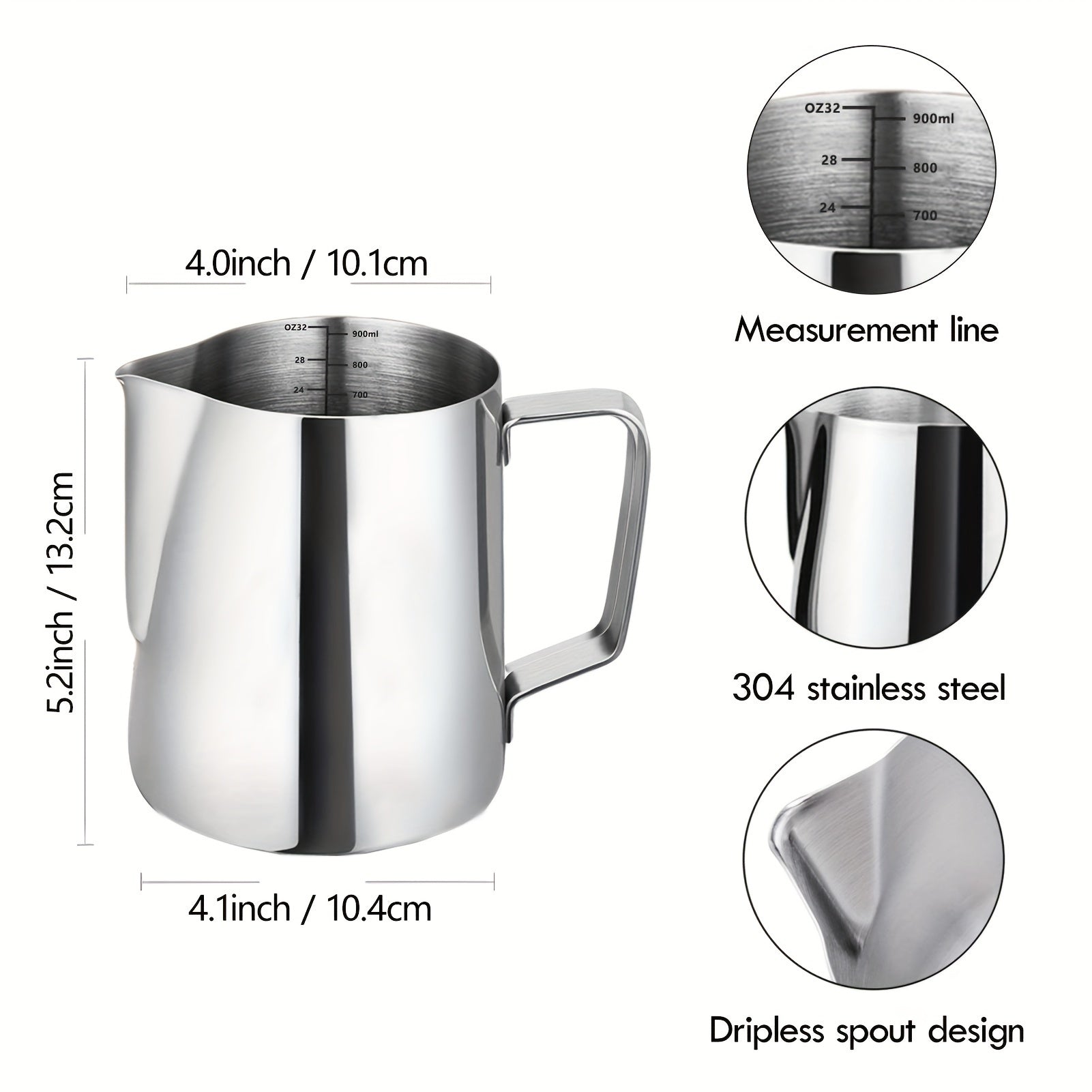 Conjunto de jarra de aço inoxidável para espumar leite de 900 ml