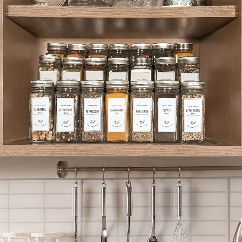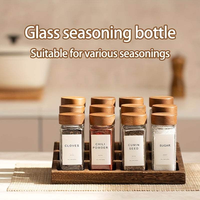 Conjunto de potes de vidro para temperos, 12/6 peças, com tampas de madeira, resistentes à ferrugem, recipientes de vidro estampados para temperos com suporte