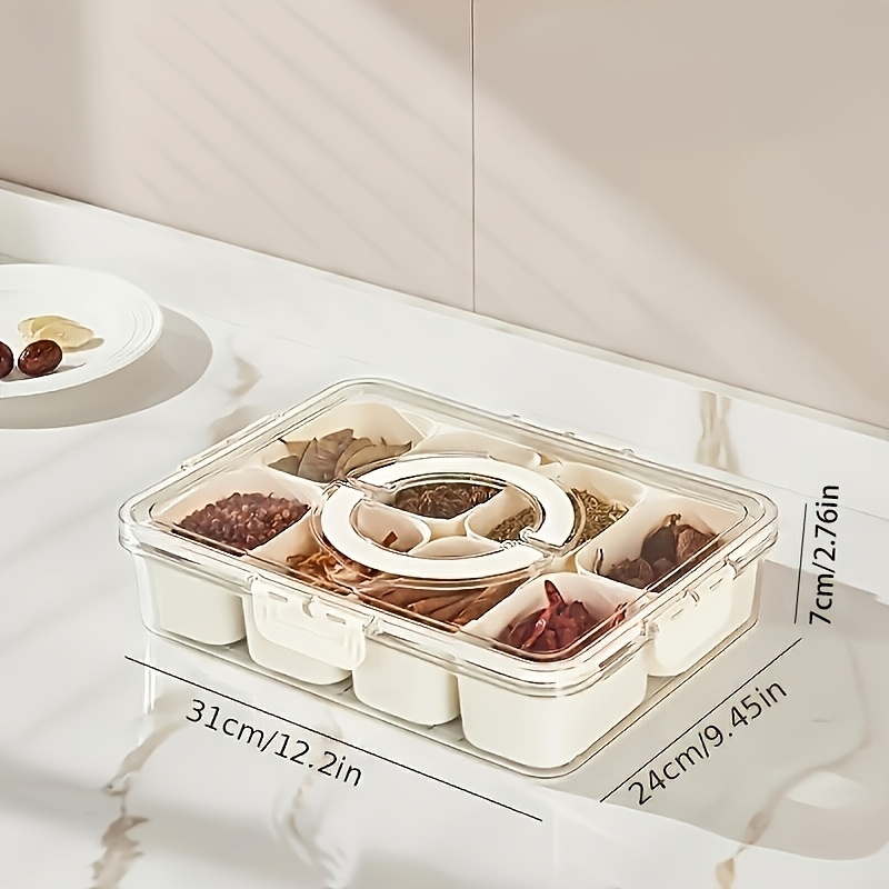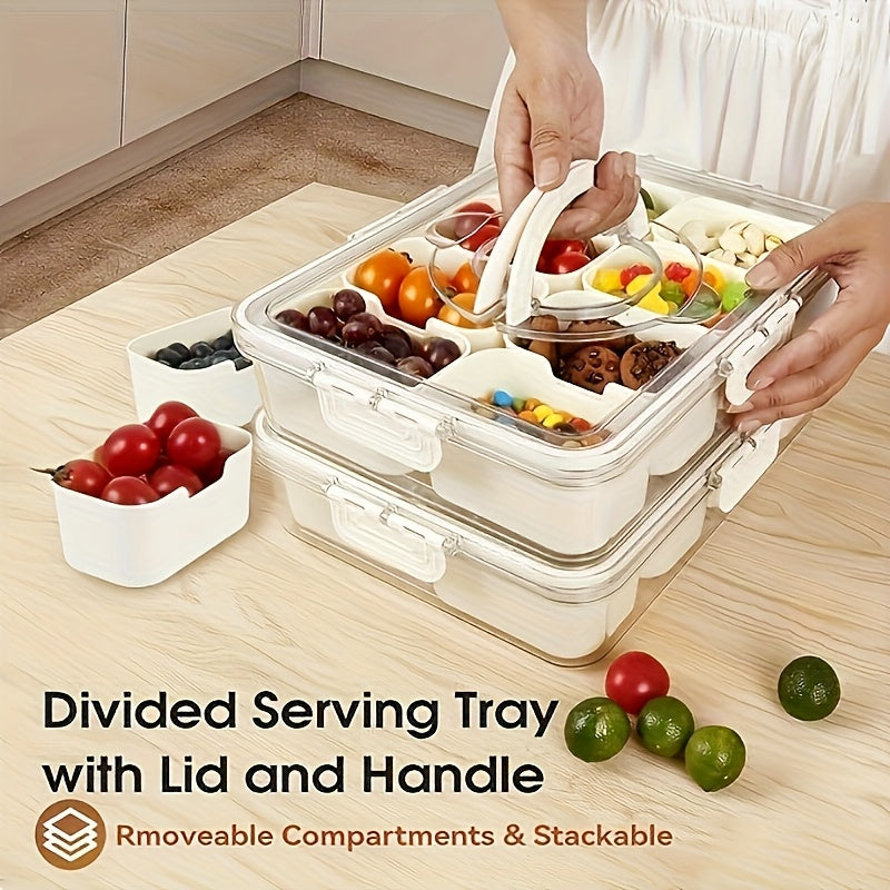 Conjunto de recipientes retangulares reutilizáveis para alimentos com 8/12 compartimentos e 9 compartimentos redondos - Organizador de lanches à prova de vazamentos com alças, bandejas empilháveis para preparação de refeições para frutas/temperos/camping (Soluções de armazenamento para cozinha e viagem)