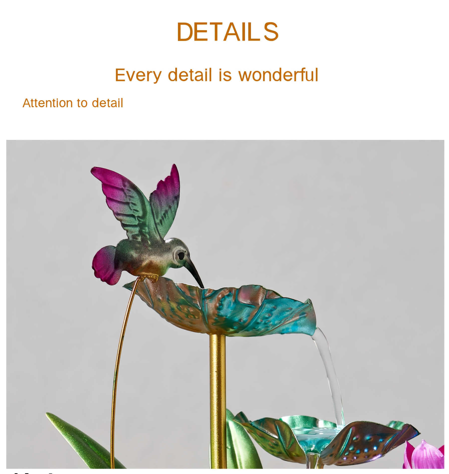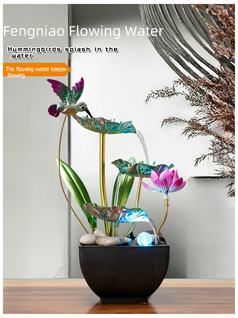Fonte em forma de cascata em formato de beija-flor de 3 níveis com sons relaxantes