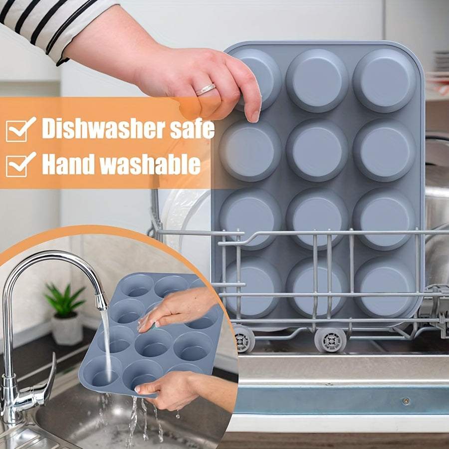 Forma de silicone para muffins com 12 xícaras - Assadeira antiaderente para cupcakes, bolos, tortas e brownies - Perfeita para confeiteiros domésticos e uso profissional, Assadeira | Forma redonda para bolo | Silicone durável