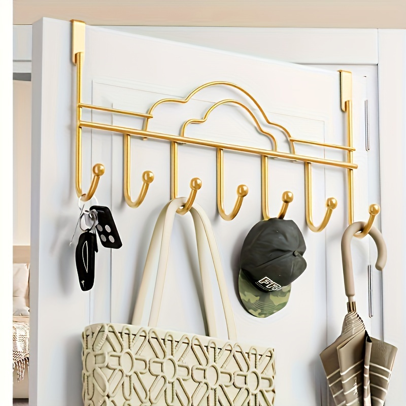 1 peça de ganchos de ferro fundido contemporâneos para pendurar na porta, cabides de metal sem perfuração para montagem na parede para toalhas, roupões e casacos - Solução de armazenamento para quarto e casa