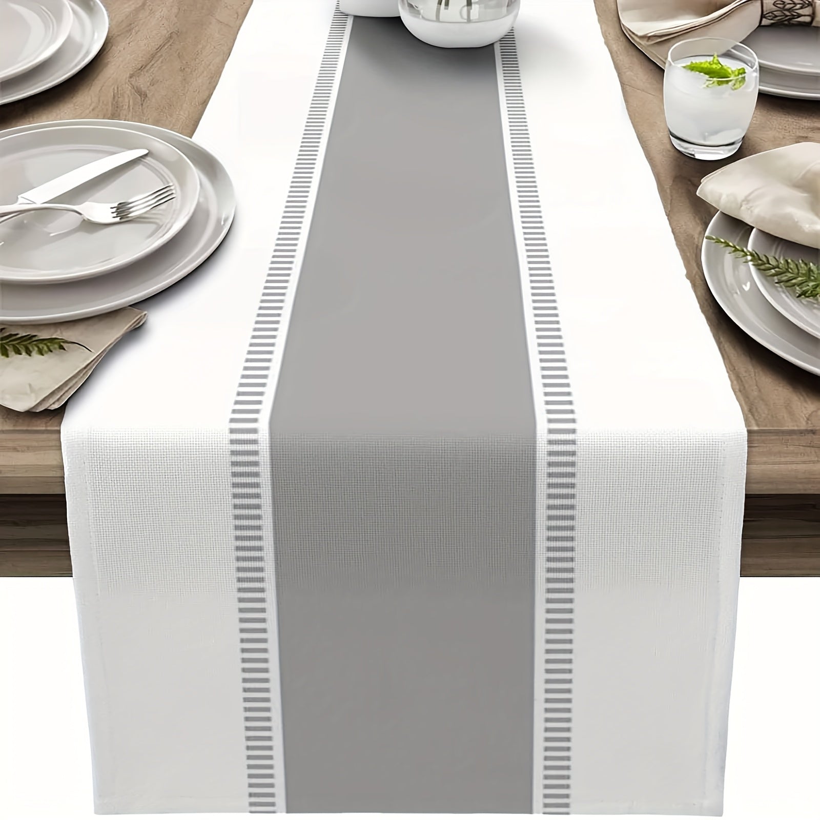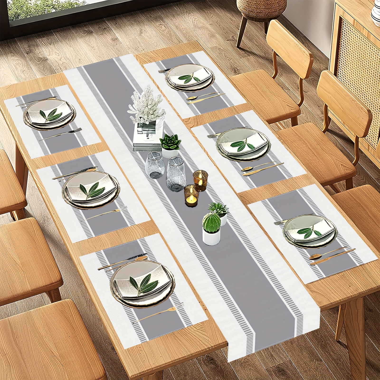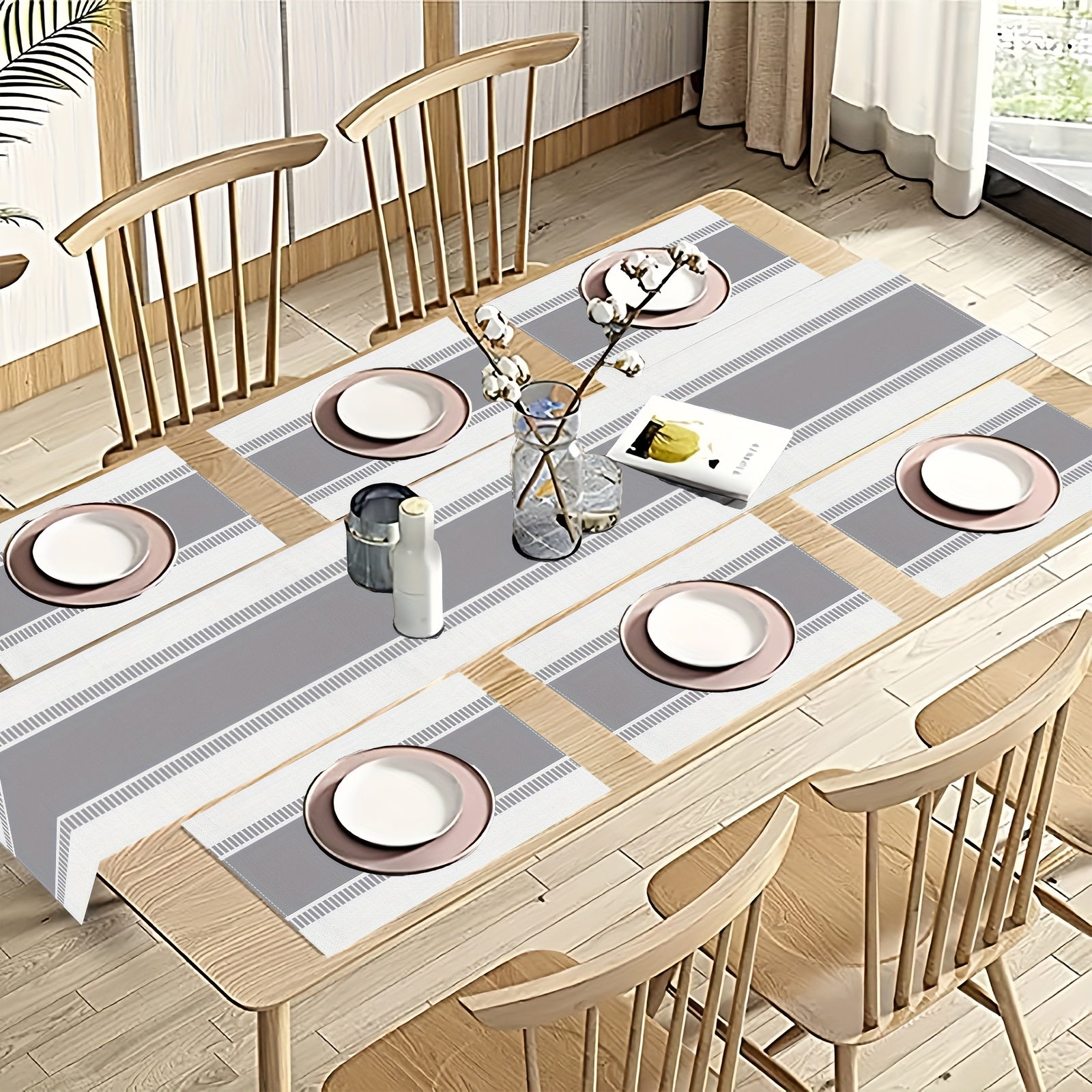 Conjunto de 5/7 peças de toalhas de mesa de linho, cor sólida cinza, listradas simples, formato retangular, trançadas, para mesa de centro, casamento, festa