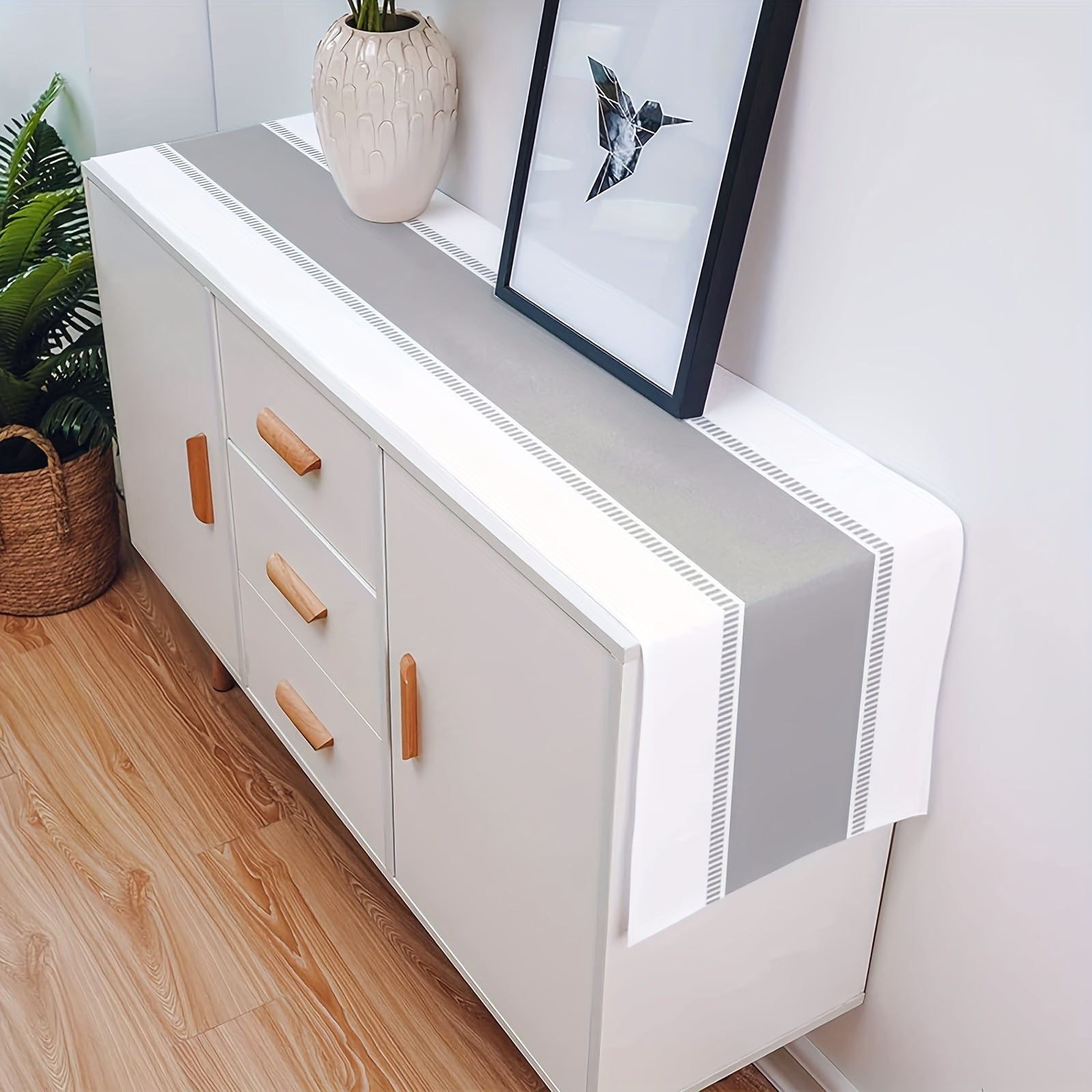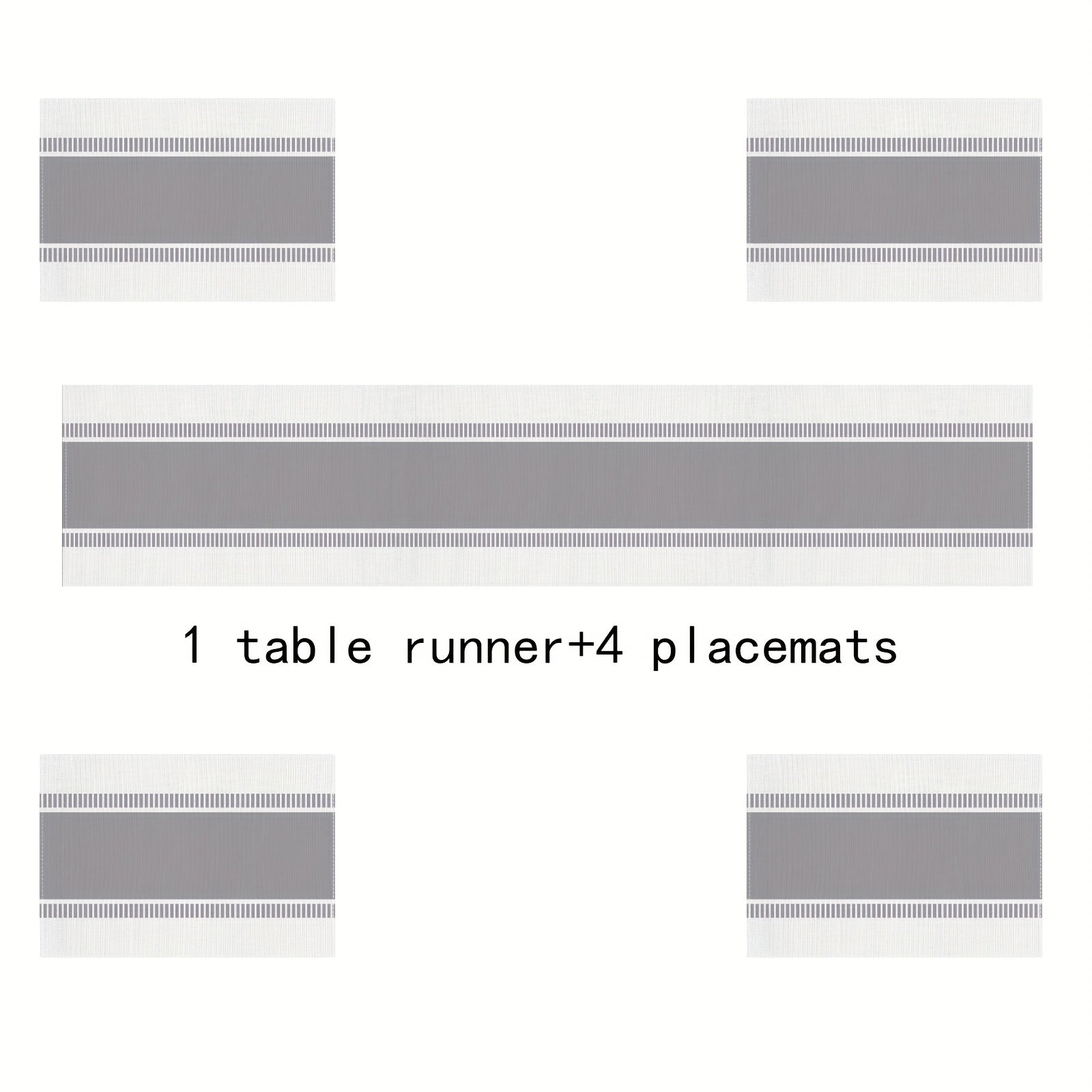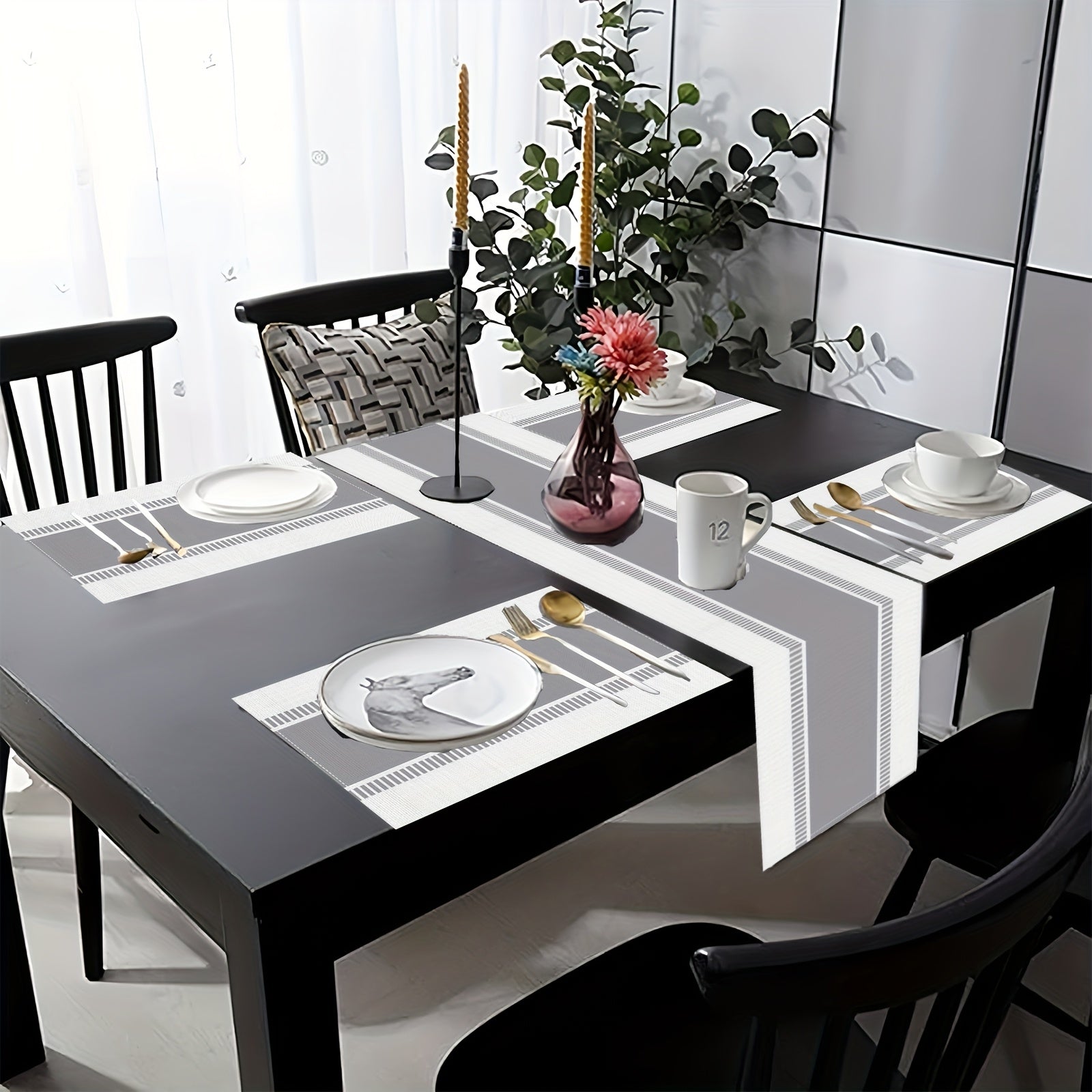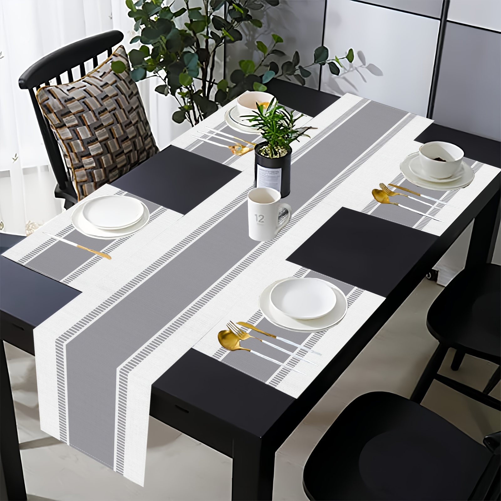 Conjunto de 5/7 peças de toalhas de mesa de linho, cor sólida cinza, listradas simples, formato retangular, trançadas, para mesa de centro, casamento, festa