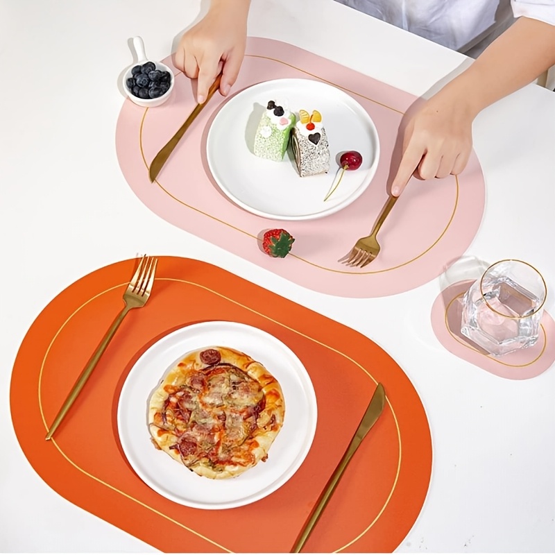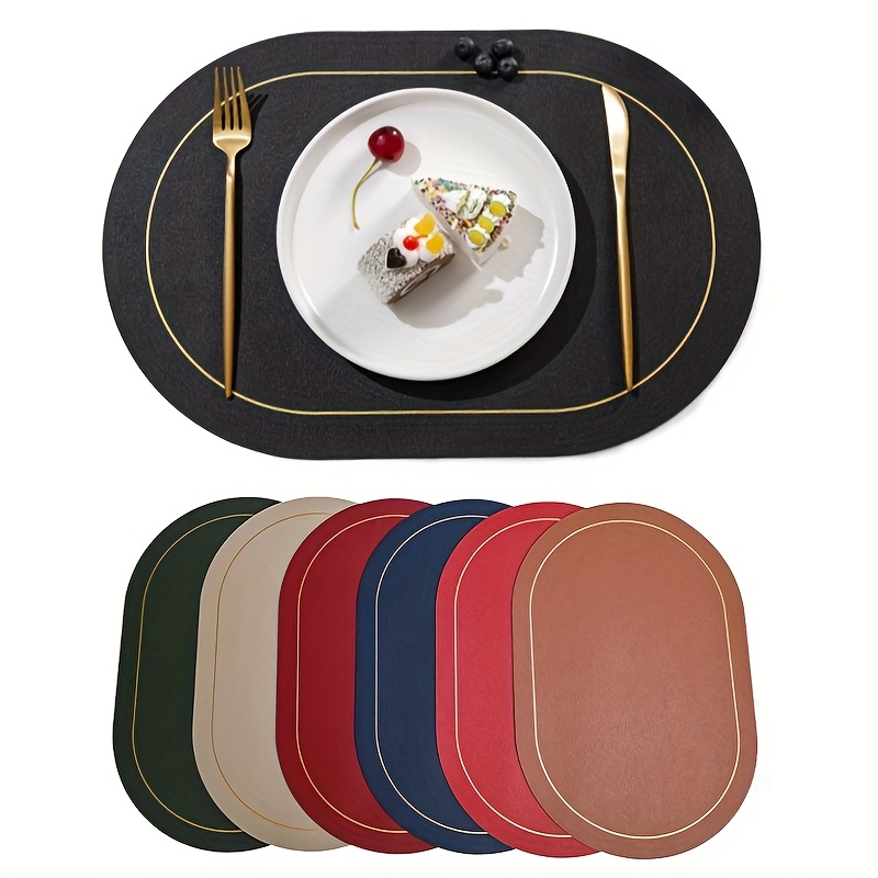 6 peças de jogos americanos redondos de couro sintético de cor sólida, isolamento térmico, antiderrapantes, fáceis de limpar, fáceis de armazenar, decorativos, para cozinha doméstica de estilo europeu, hotel, café, mesa ao ar livre, Natal