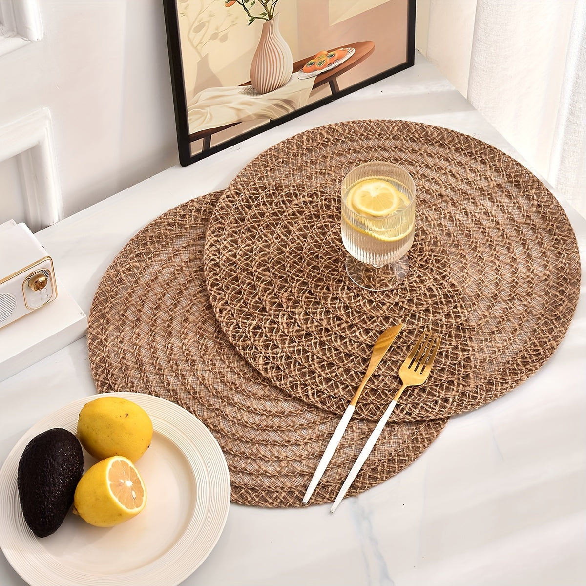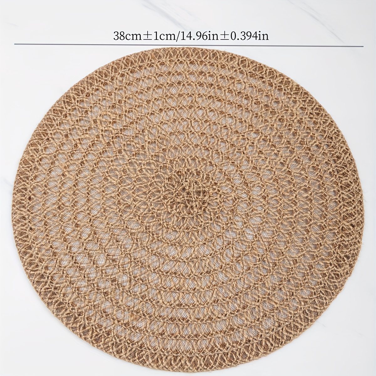 Conjunto de 2/4/6 peças de jogos americanos de juta, jogos americanos redondos feitos à mão, material de juta natural, jogos americanos decorativos para mesa de jantar, jogos americanos para louça, com lavagem à mão apenas para jantar