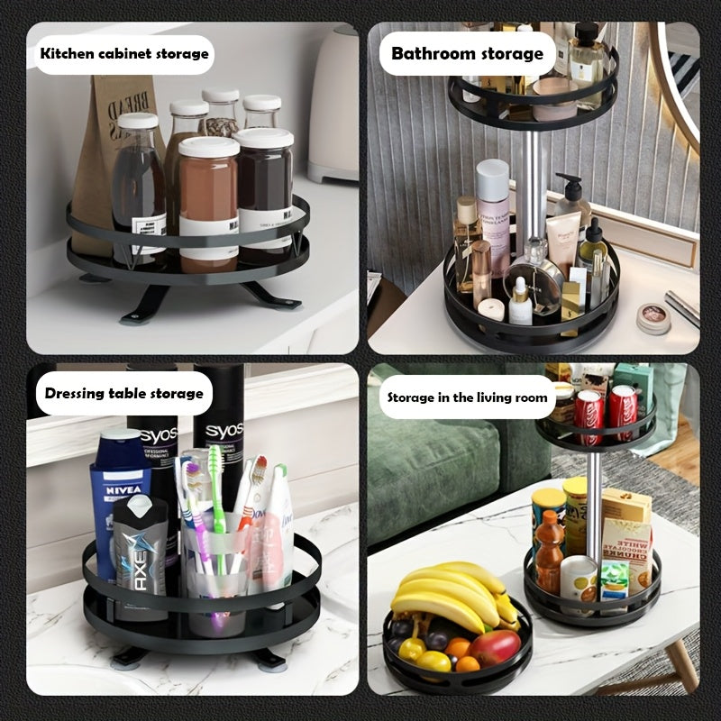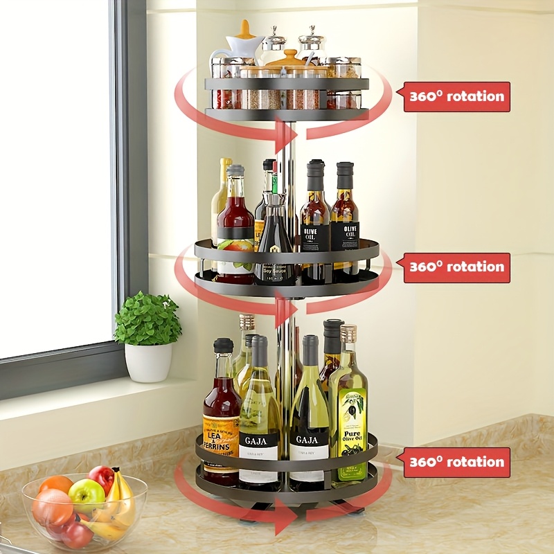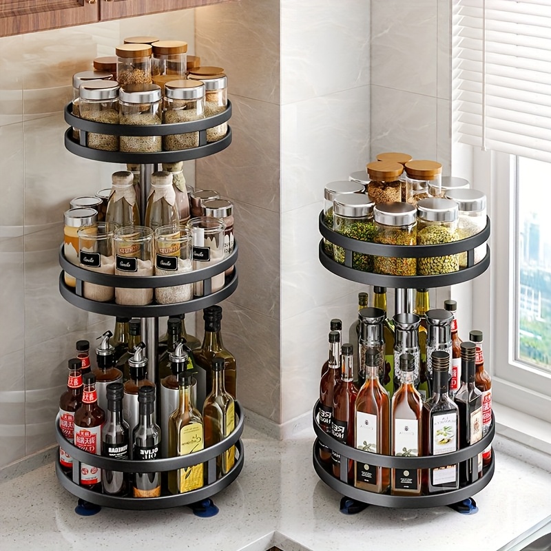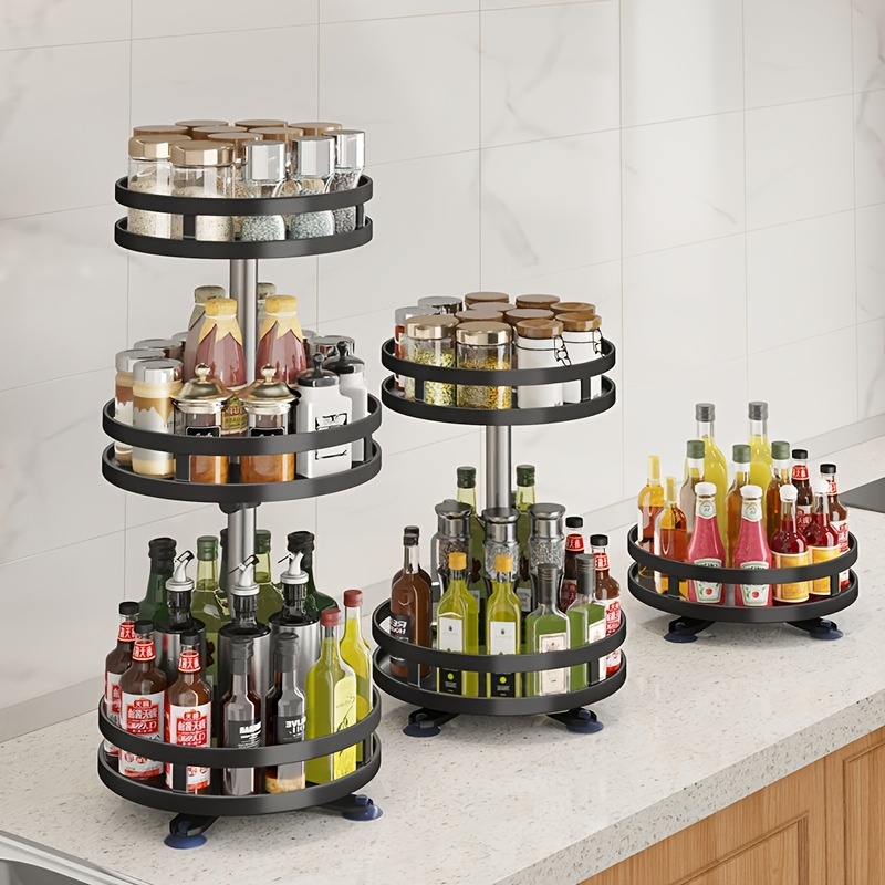 Organizador de cozinha giratório de 360 graus - Suporte de temperos de metal com recipientes para temperos, óleos e vinagre - Opções de camada dupla/tripla