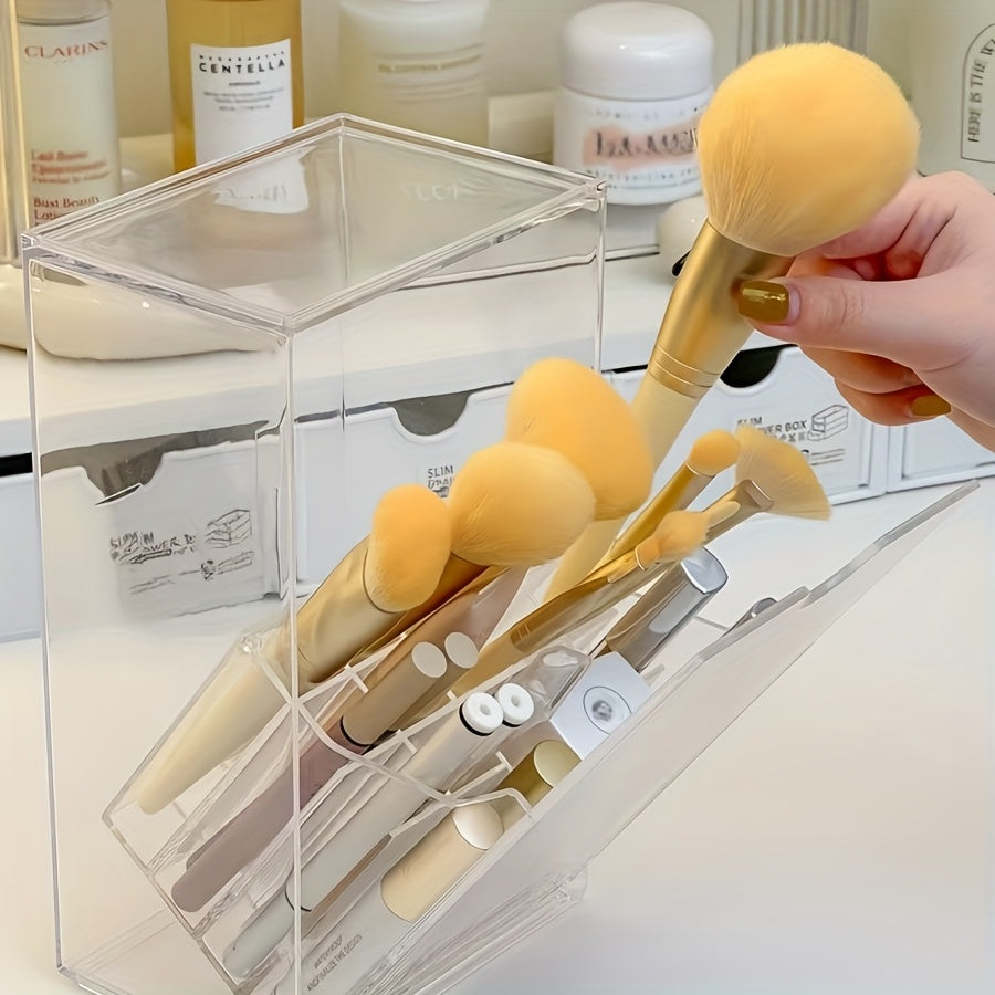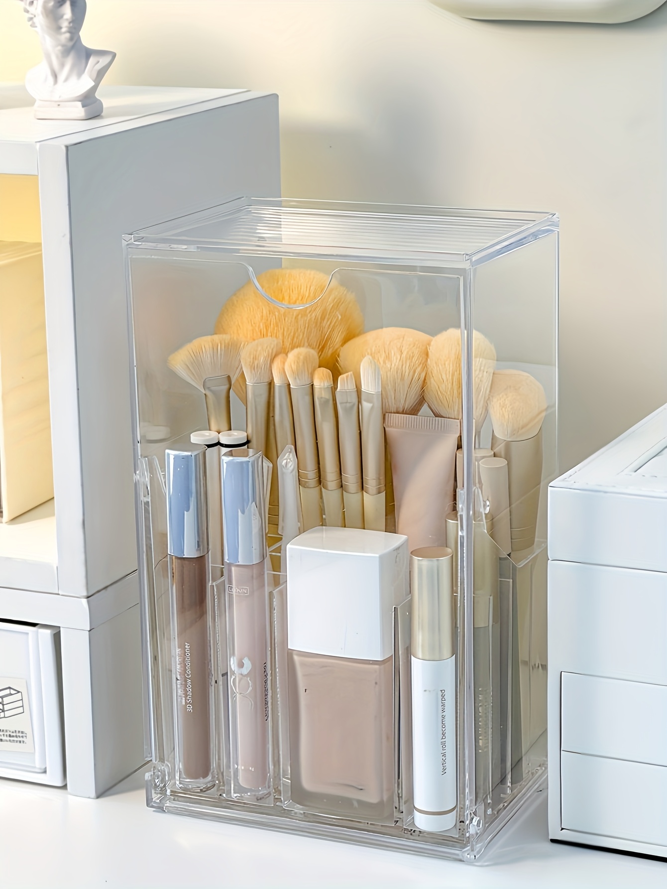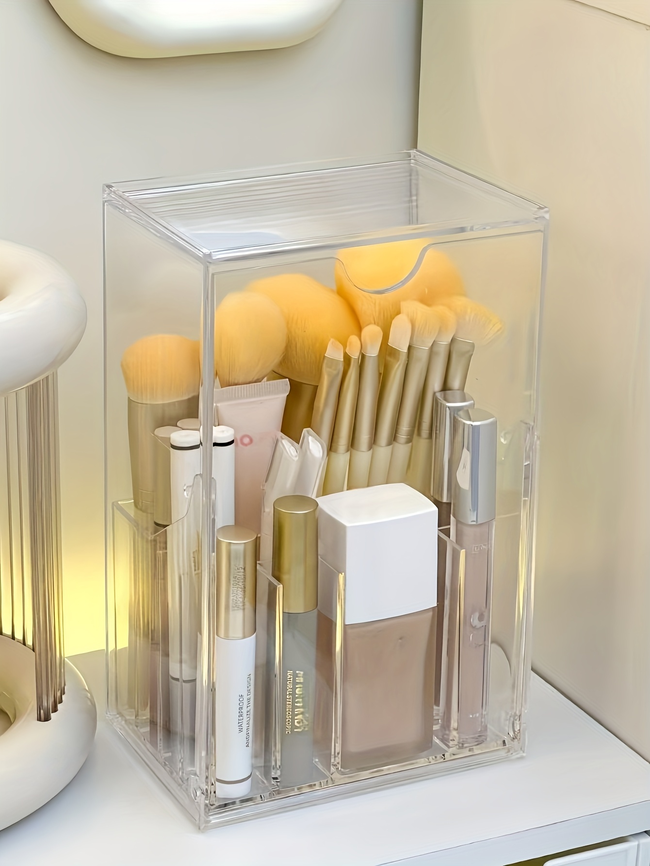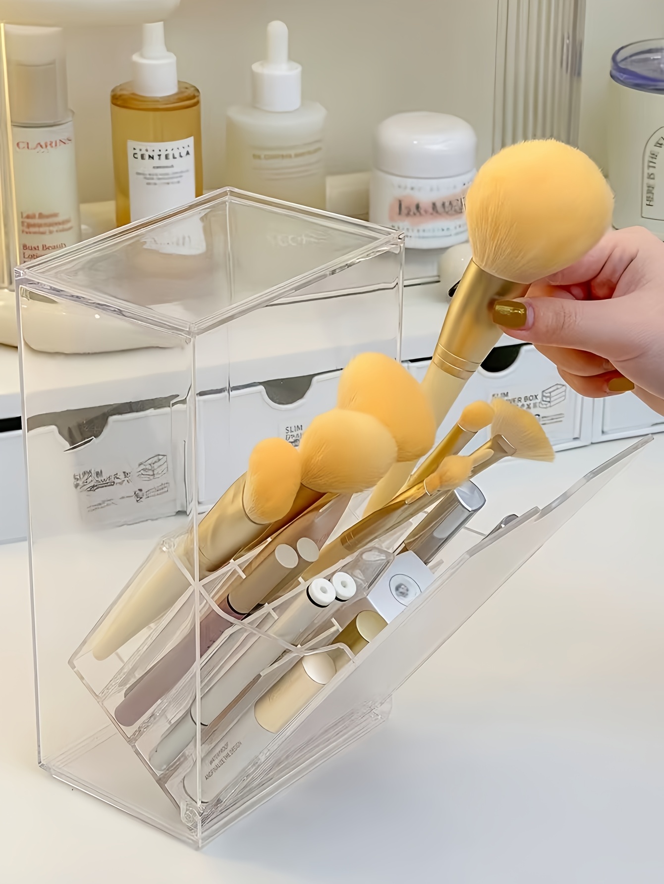 Porta-pincéis de maquiagem ajustável em acrílico transparente com compartimentos