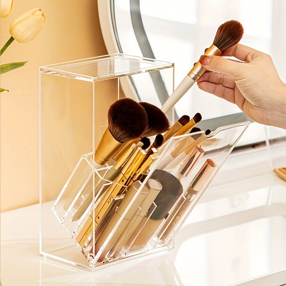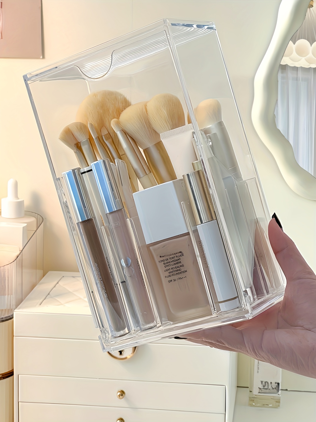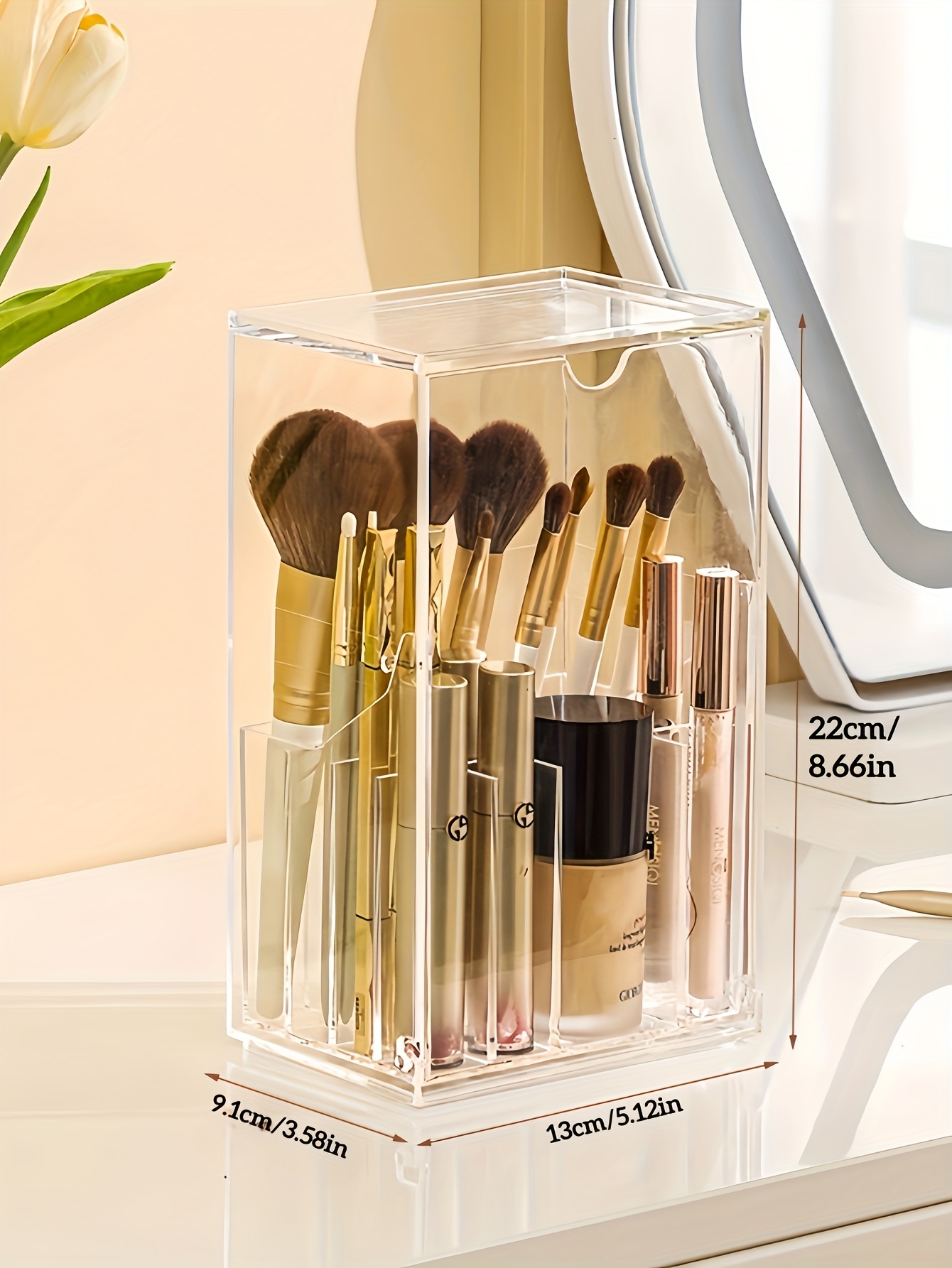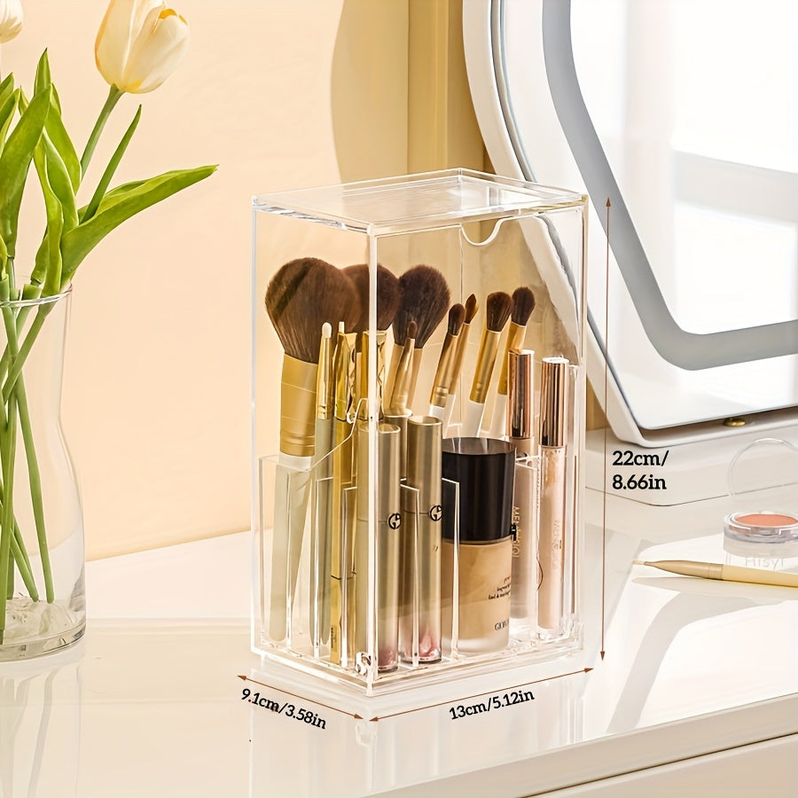 Porta-pincéis de maquiagem ajustável em acrílico transparente com compartimentos