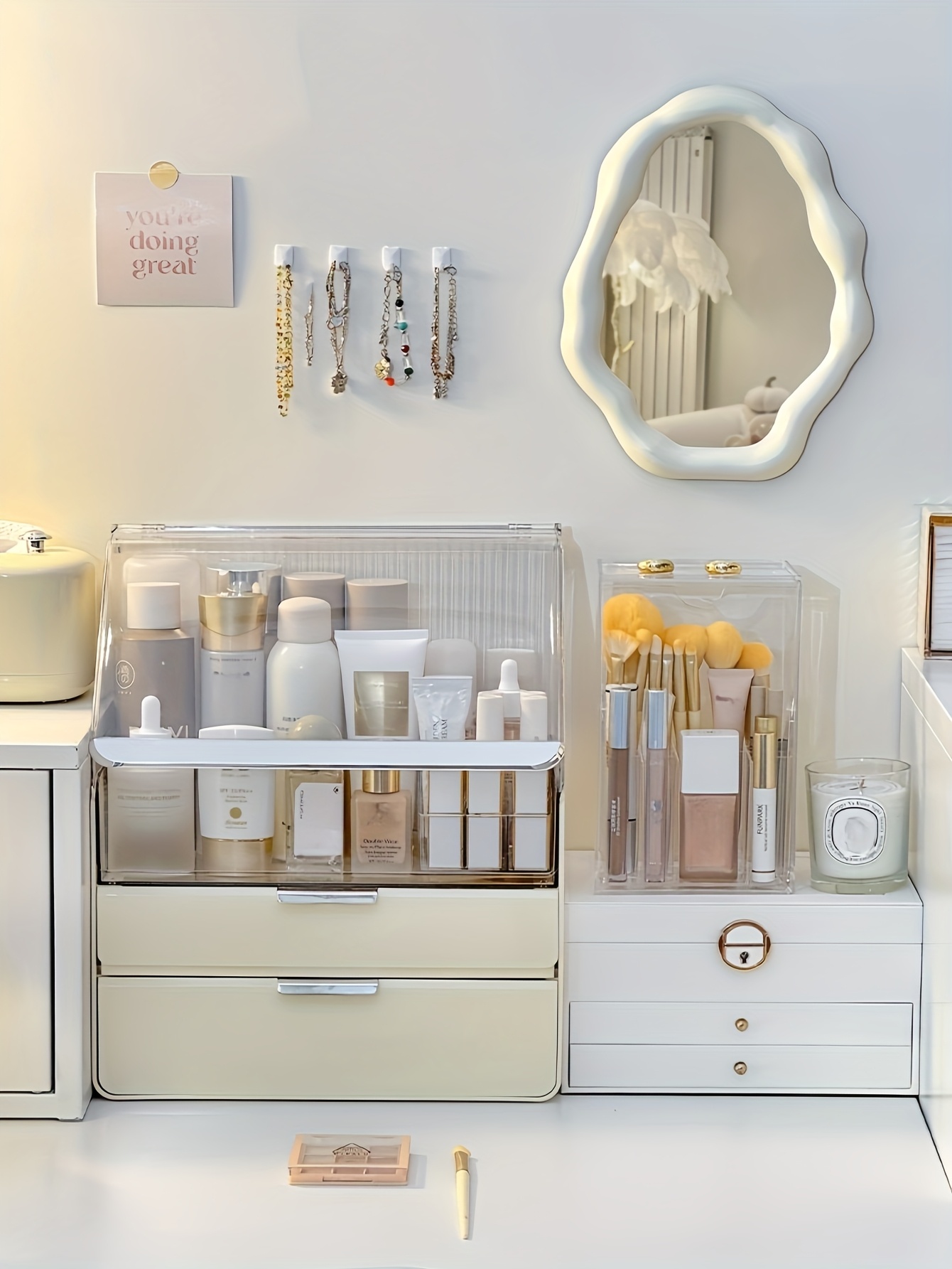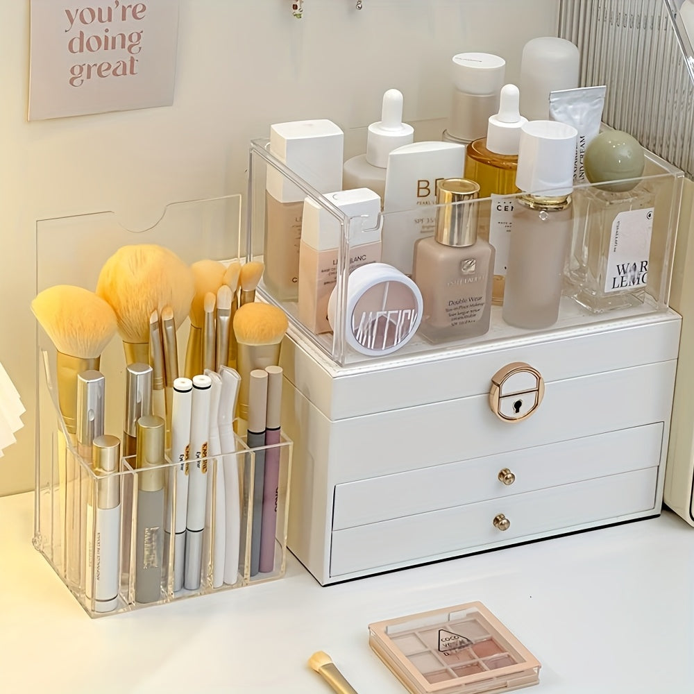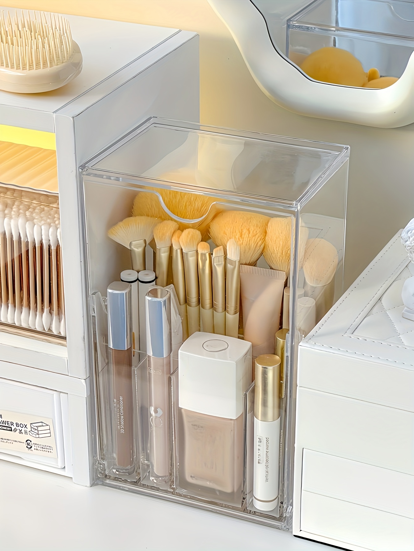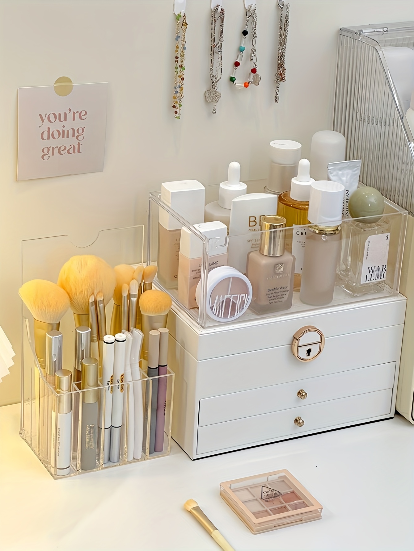 Porta-pincéis de maquiagem ajustável em acrílico transparente com compartimentos