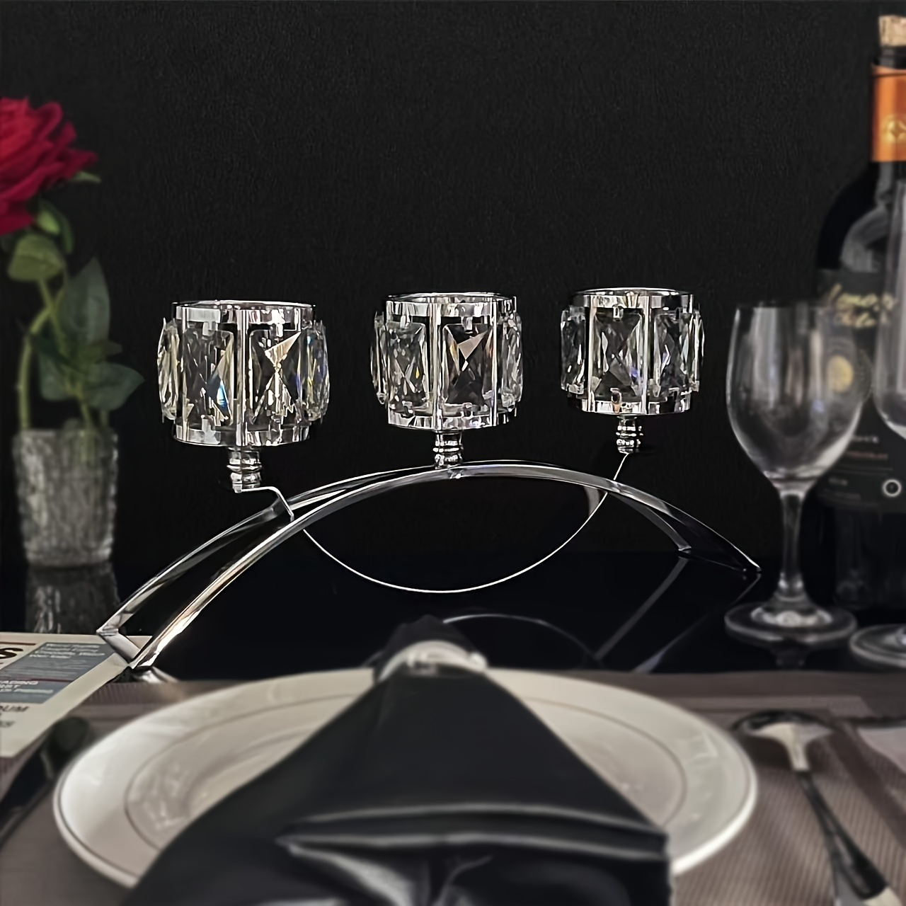Porta-velas de cristal com 3 cabeças, candelabro prateado e dourado, estilo arco, centro de mesa para casamento e decoração de casa