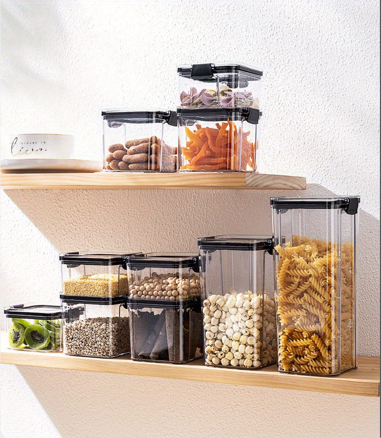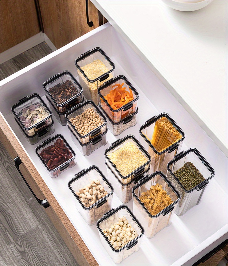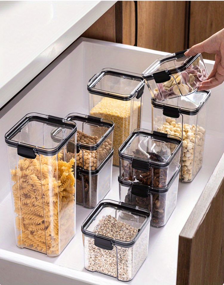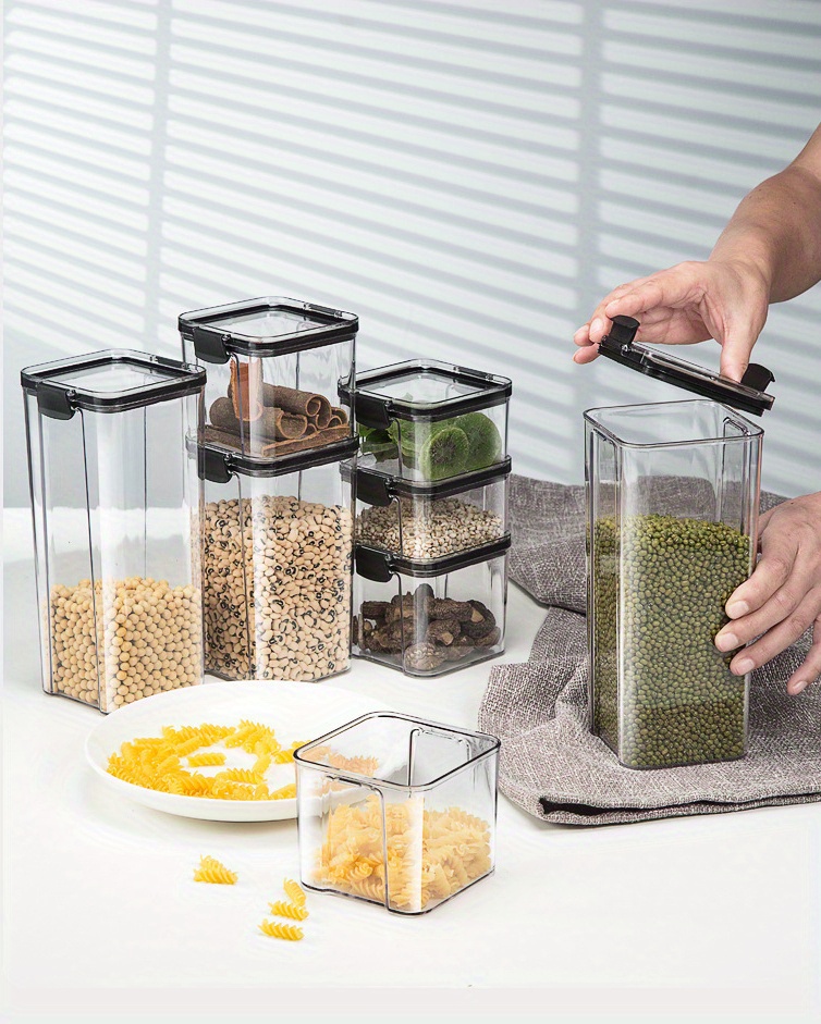1 conjunto. Pote para grãos diversos. Latas plásticas transparentes seladas. Caixa de armazenamento à prova de poeira para preservação de cozinha. Caixa de armazenamento para lanches.