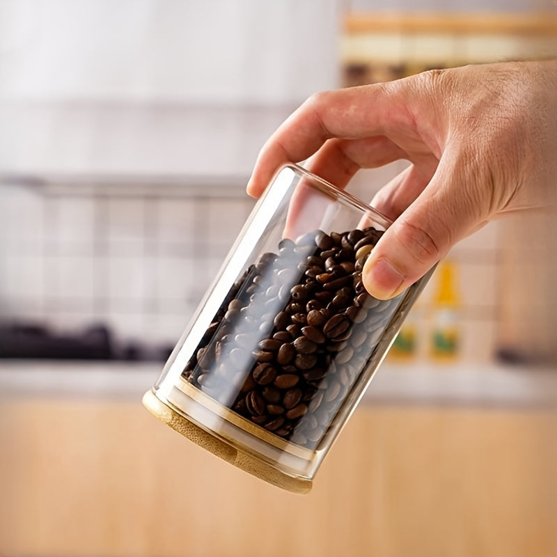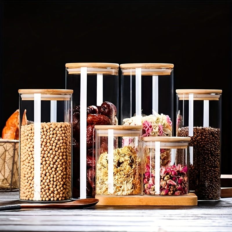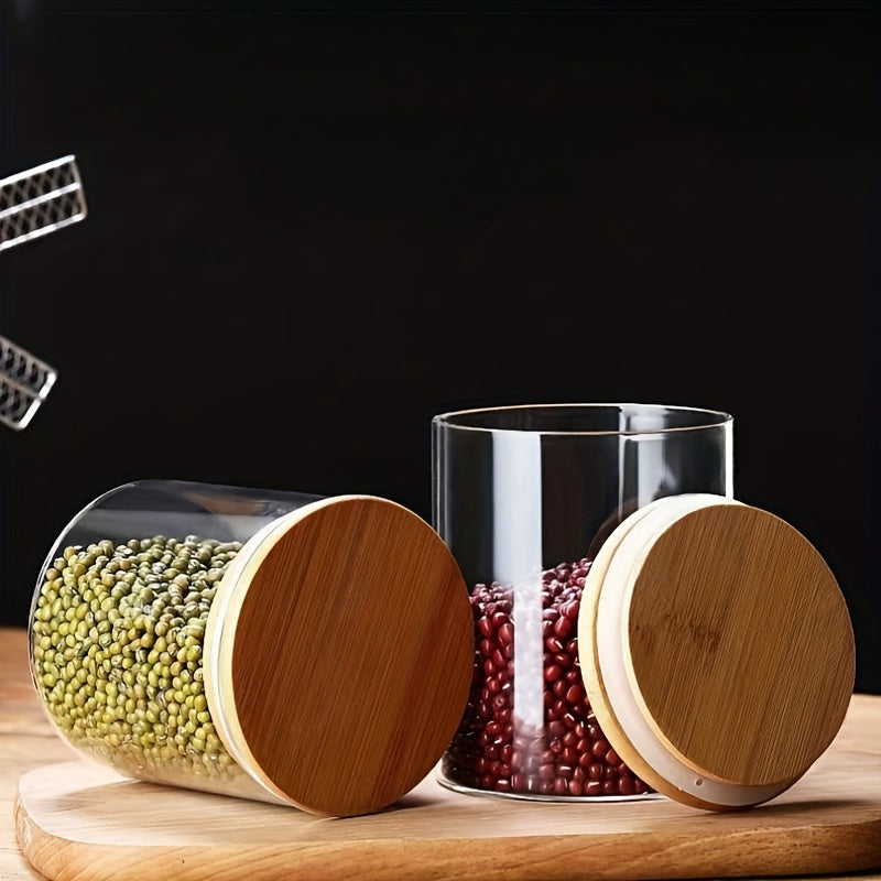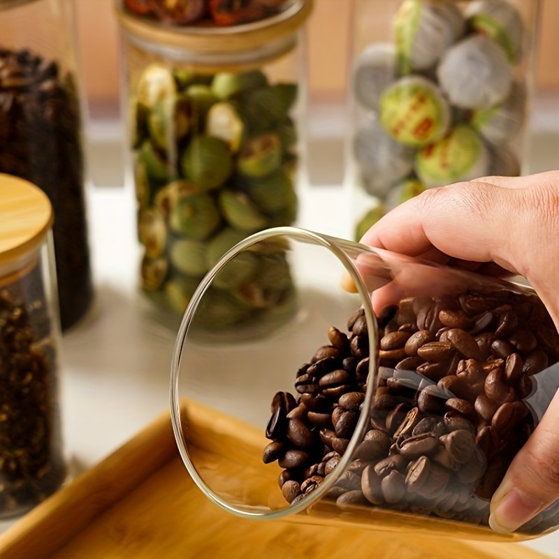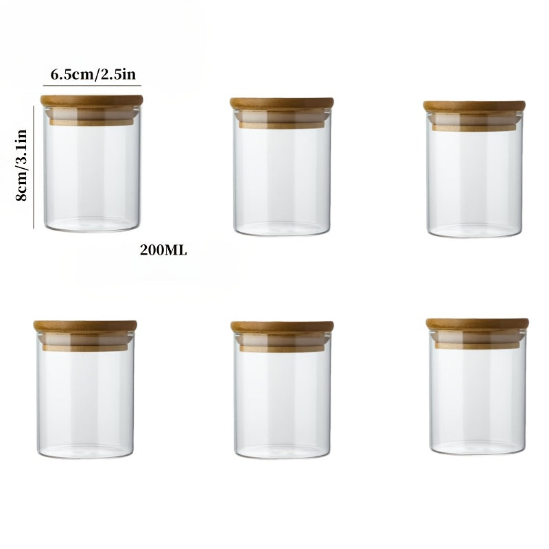 6 peças de potes de vidro com alto teor de borosilicato resistente ao calor, recipientes redondos transparentes para lanches de cozinha, potes selados para grãos, com tampas para armazenamento de doces e grãos de café.