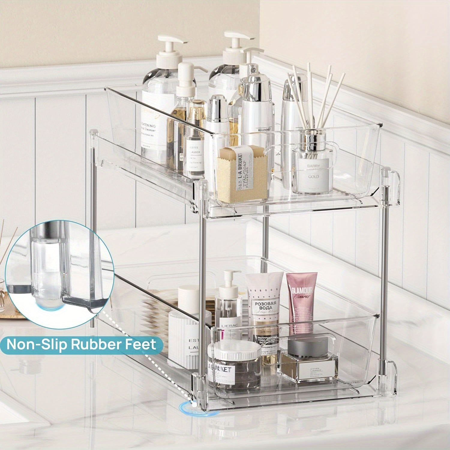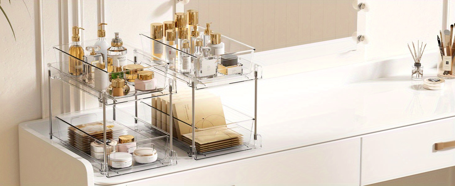 Prateleiras de plástico removíveis para banheiro, 1 peça/2 peças/4 peças, prateleiras de armazenamento autônomas de 2 camadas, organizador transparente para armário de remédios, cômoda, cozinha com caixa de armazenamento embaixo da pia