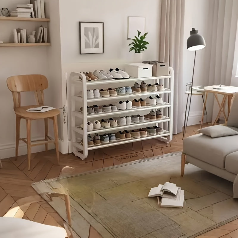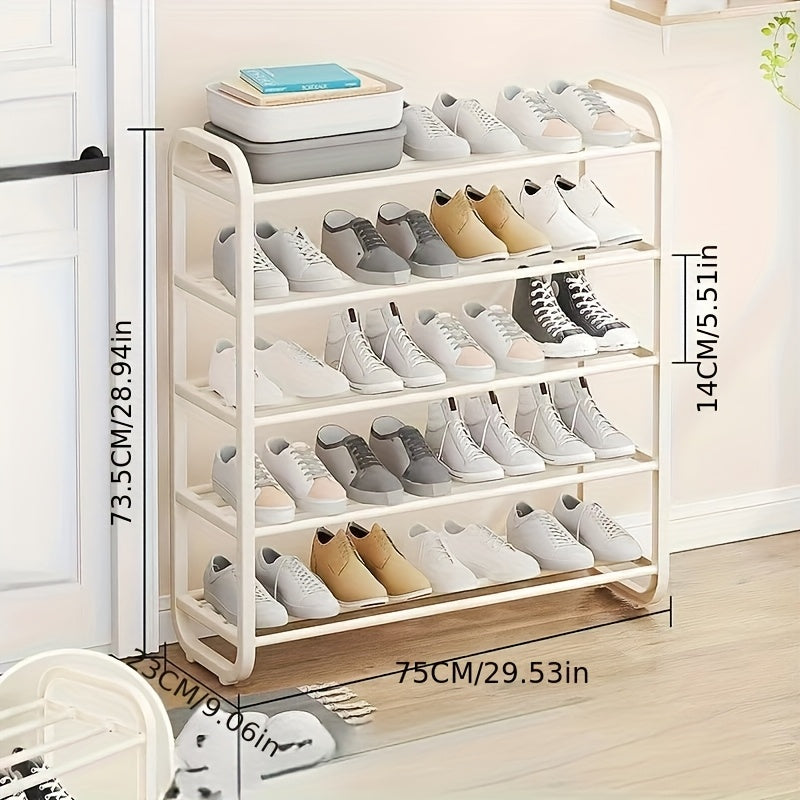 Sapateira compacta de 5 níveis - Design durável e estreito para armazenamento na entrada e no dormitório, organizador multicamadas de metal e plástico para calçados esportivos, prateleira independente, sem necessidade de eletricidade, organizador de armazenamento de sapatos