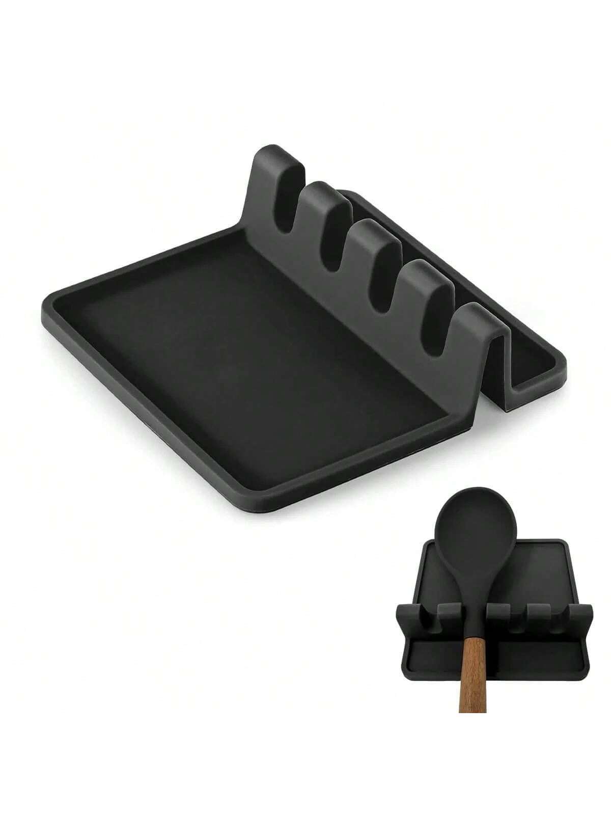 1 peça de suporte clássico de silicone para utensílios de cozinha com coletor de gordura, suporte retangular multiuso para colheres, organizador de colheres e pinças com cabo longo resistente ao calor, design de encaixe não à prova d'água