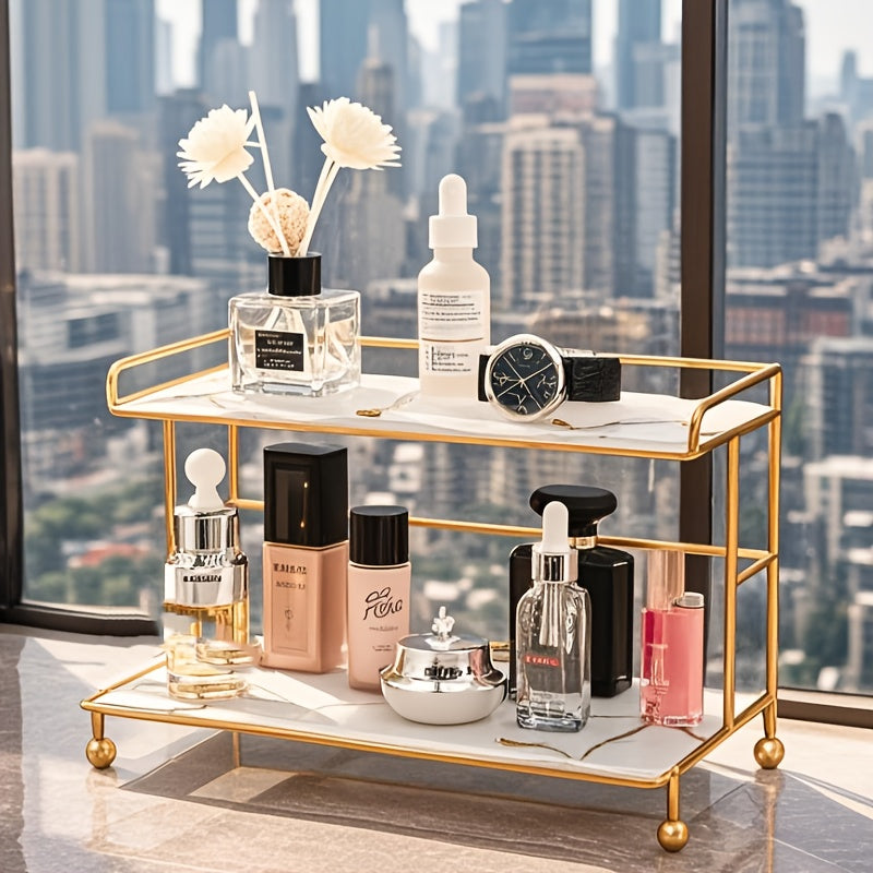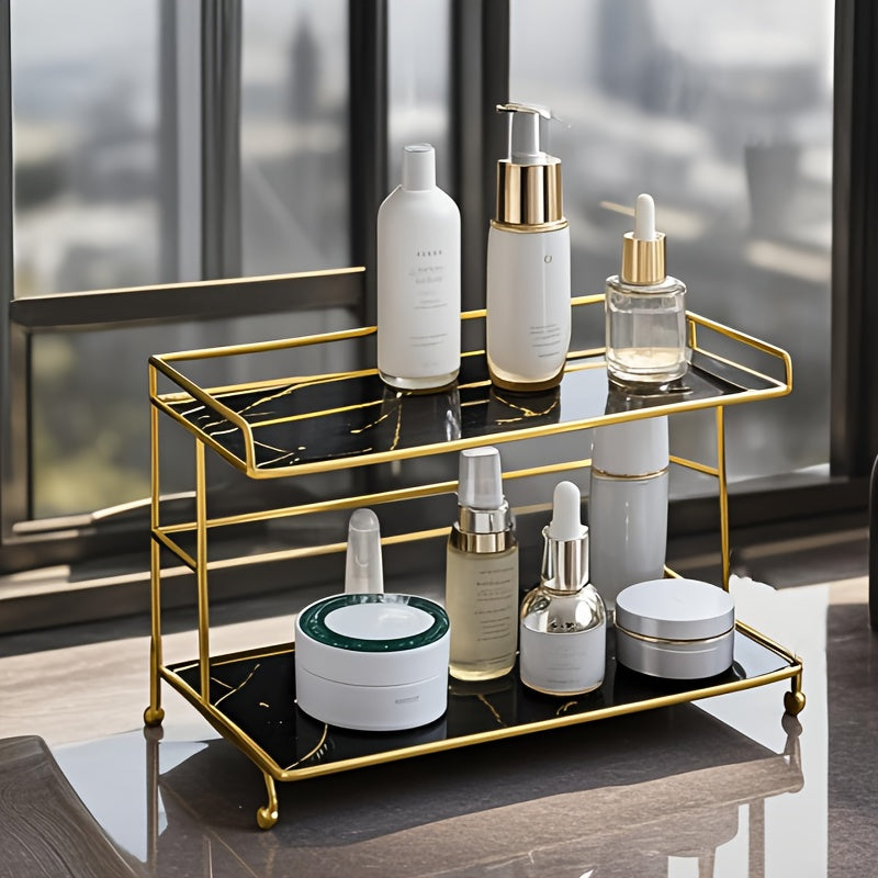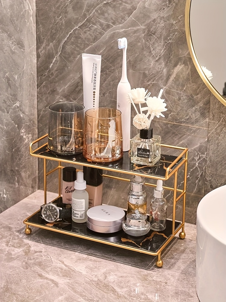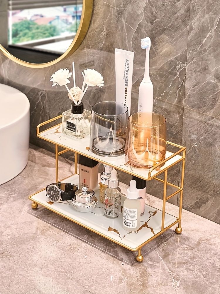 1 peça de suporte de armazenamento de cosméticos de camada dupla, design de grande capacidade para maquiagem, cuidados com a pele, joias, etc., adequado para penteadeira, banheiro, quarto, elegante e prático, melhora a organização do espaço