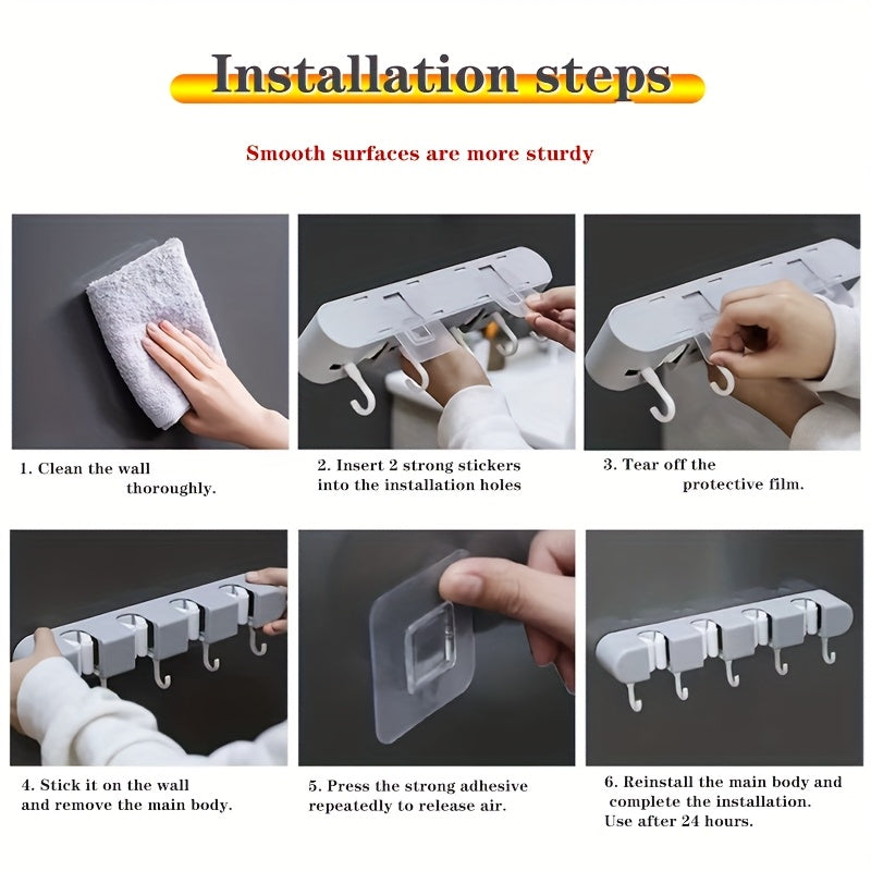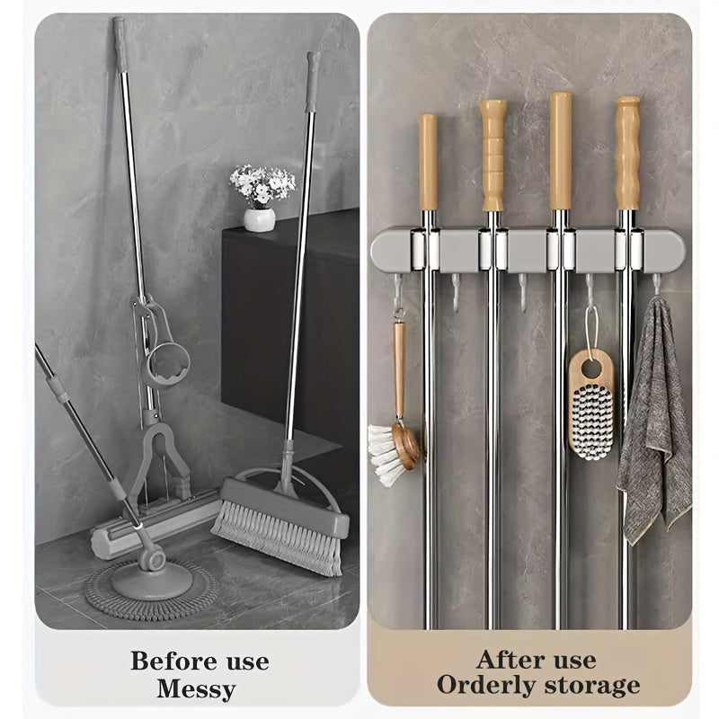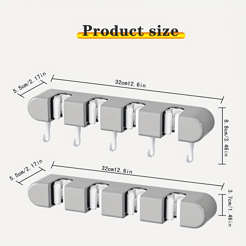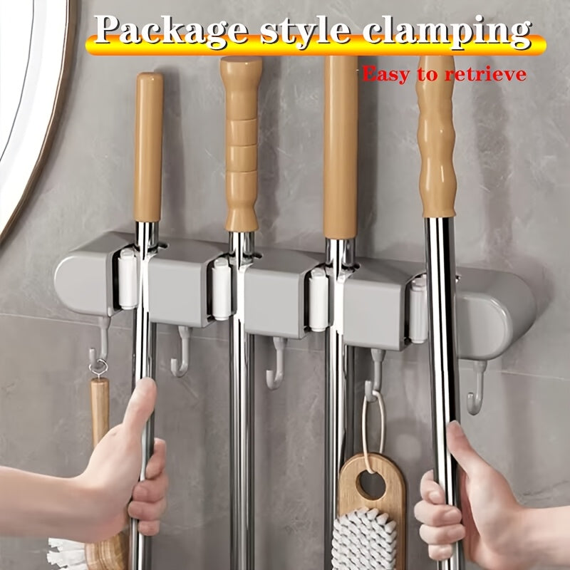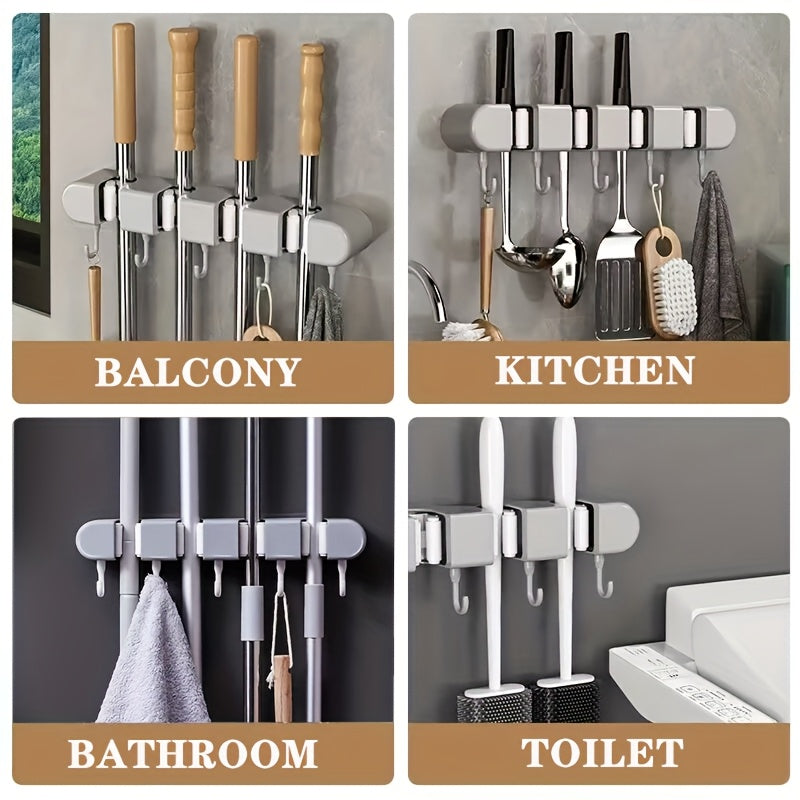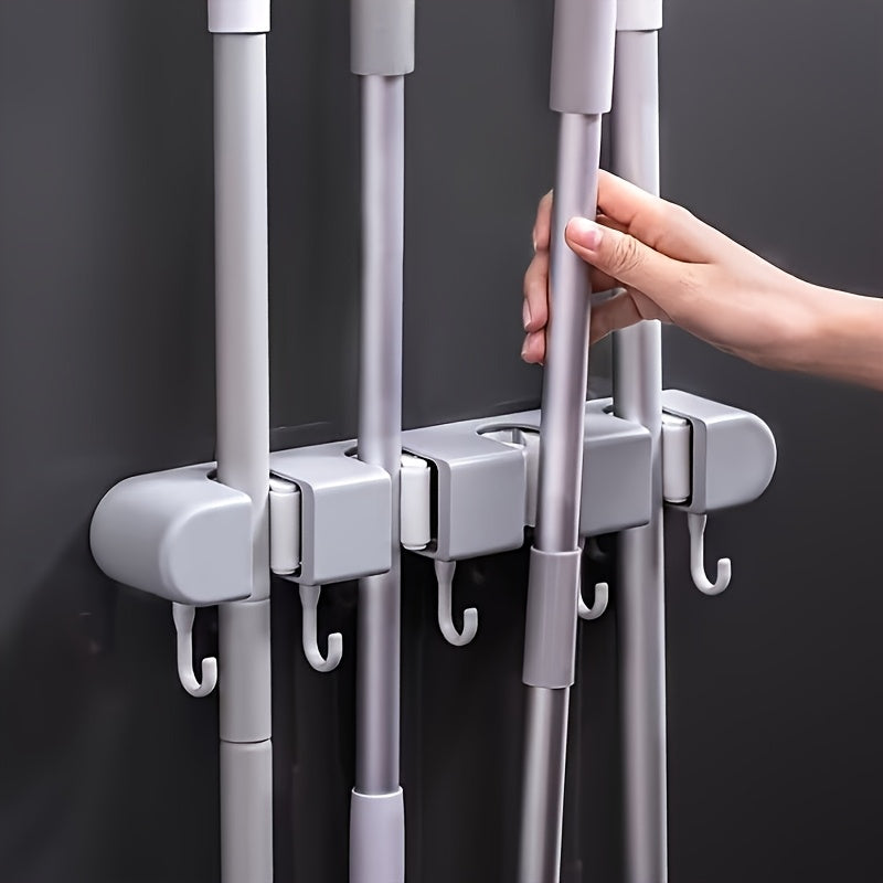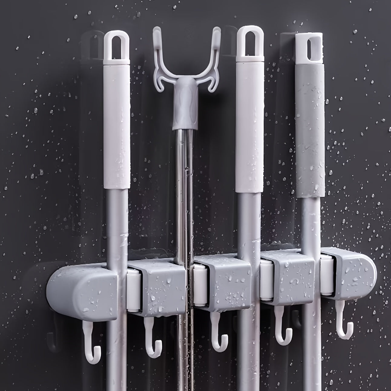 Suporte de parede para esfregão e vassoura | Organizador adesivo sem furadeiras para banheiros | Plástico resistente com clipes de silicone flexíveis | Design com vários ganchos para ferramentas de limpeza doméstica | Organizadores e armazenamento para banheiro que economizam espaço e são fáceis de instalar