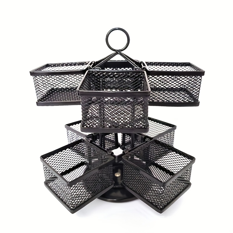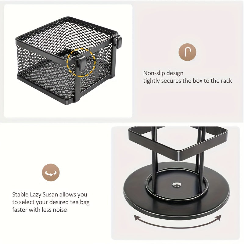 Suporte giratório para chá e café com 8 compartimentos - Suporte artístico de ferro preto com cestos removíveis, giratório de 360 graus, ideal para armazenamento em casa, cafés e casas de chá, Suporte para chá | Suporte decorativo para chá | Suporte de metal durável, acessórios para bar de chá