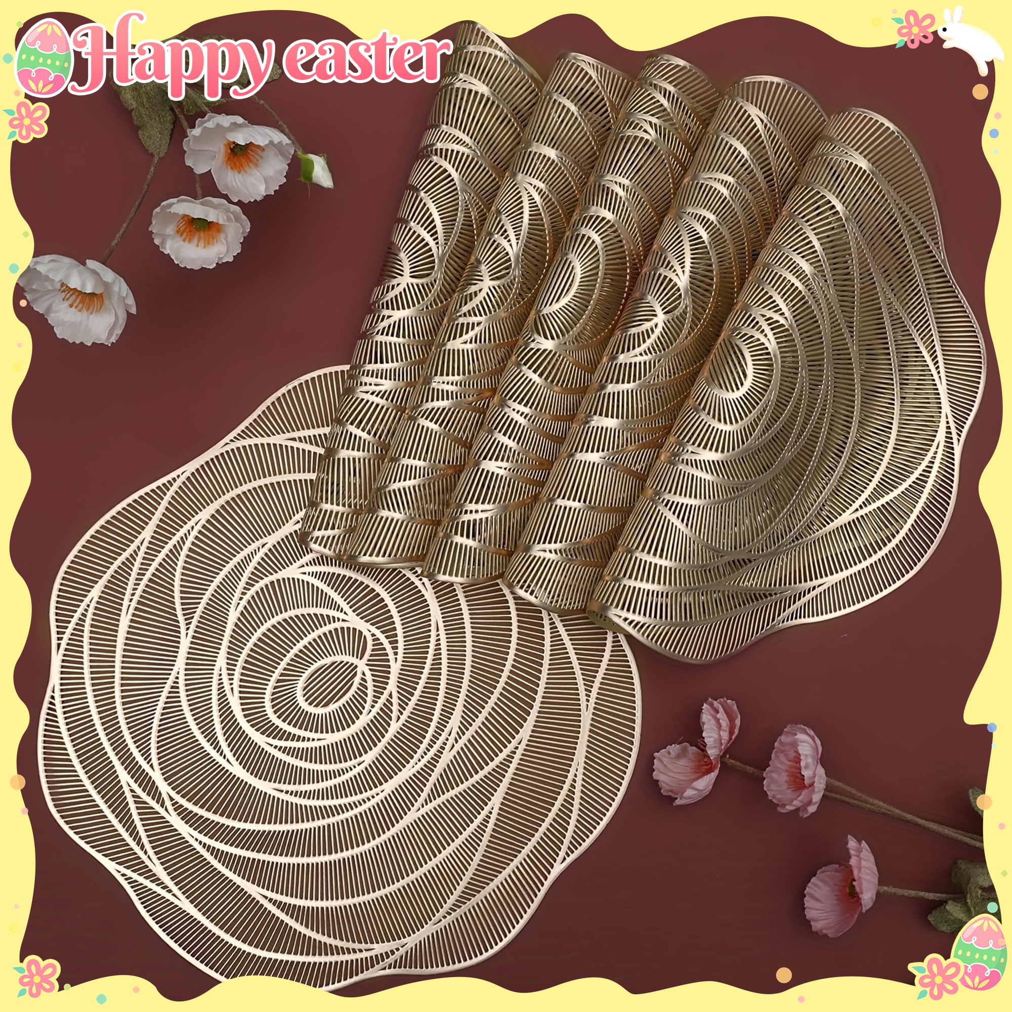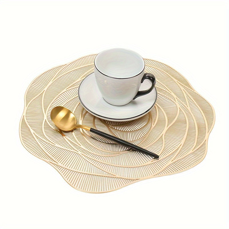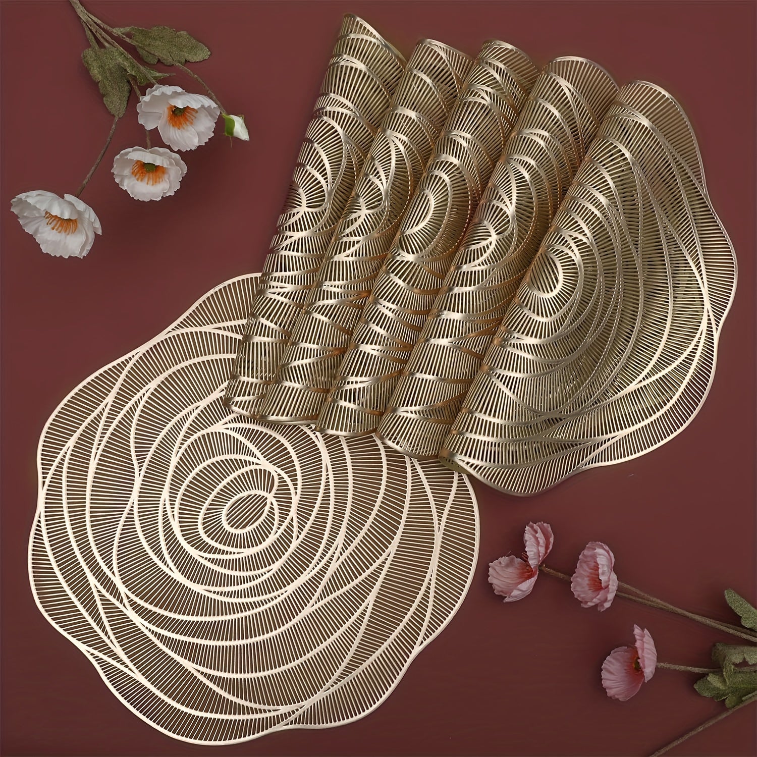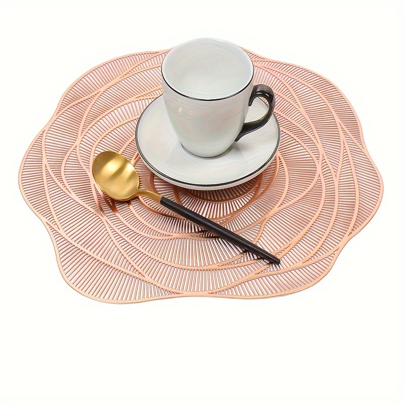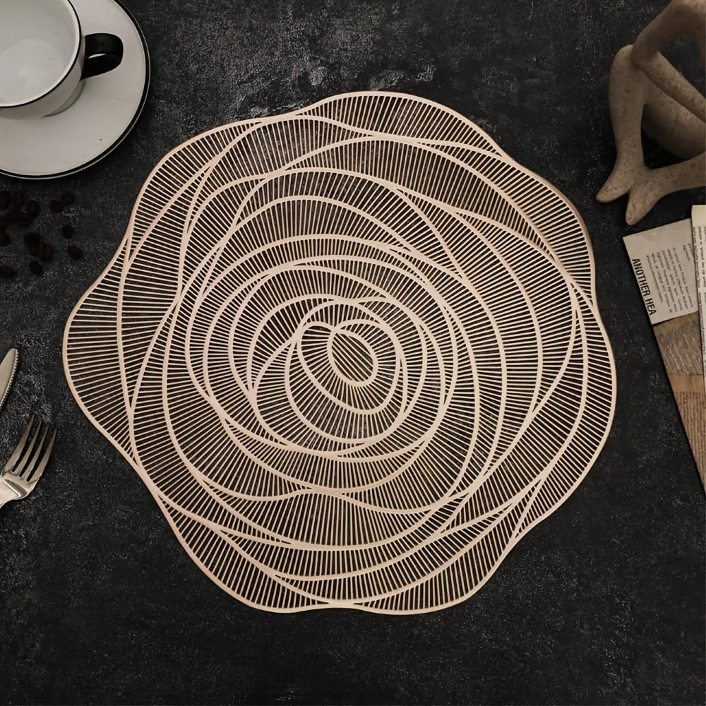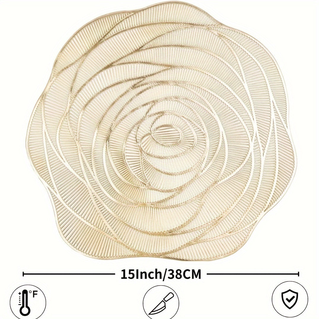 Um conjunto de 6 jogos americanos de PVC para mesas redondas, com desenhos de rosas, laváveis, antiderrapantes e resistentes ao calor, perfeitos para aniversários de casamento e Dia dos Namorados,